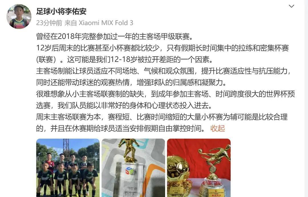 别再信“中国孩子没比赛打”了。真相是,能打上比赛的孩子,已经挤进了另一个赛道。 看看北京上海的U12孩子。2024年开始,他们正在打主客场制的省级联赛,全年超25轮。这是中国足协新青训联赛体系的直接结果。京津冀试点已经跑通,接下来就是全国覆盖。 但残酷的筛选同时开始。发达地区赛事覆盖率冲到75%,中西部还低于40%。你的孩子在哪里,直接决定他一年能踢12场还是28场。 数据撕开差距:日本U15球员年均踢35-40场。德国报告显示,中国14岁球员比赛量只有德国同龄人的28%。不是没比赛,是比赛资源正在高速向体系内聚集。 家长现在要做的不是等待,而是选择。盯紧你城市的“体教融合”示范校,关注大区级联赛的推进。未来3年,青训金字塔迅速成形,塔基和塔顶的差距,就是每周一场比赛和每月一场比赛的距离。 足球之路从未公平,但路径从未如此清晰。要做的不是抱怨稀缺,而是成为稀缺的一部分。