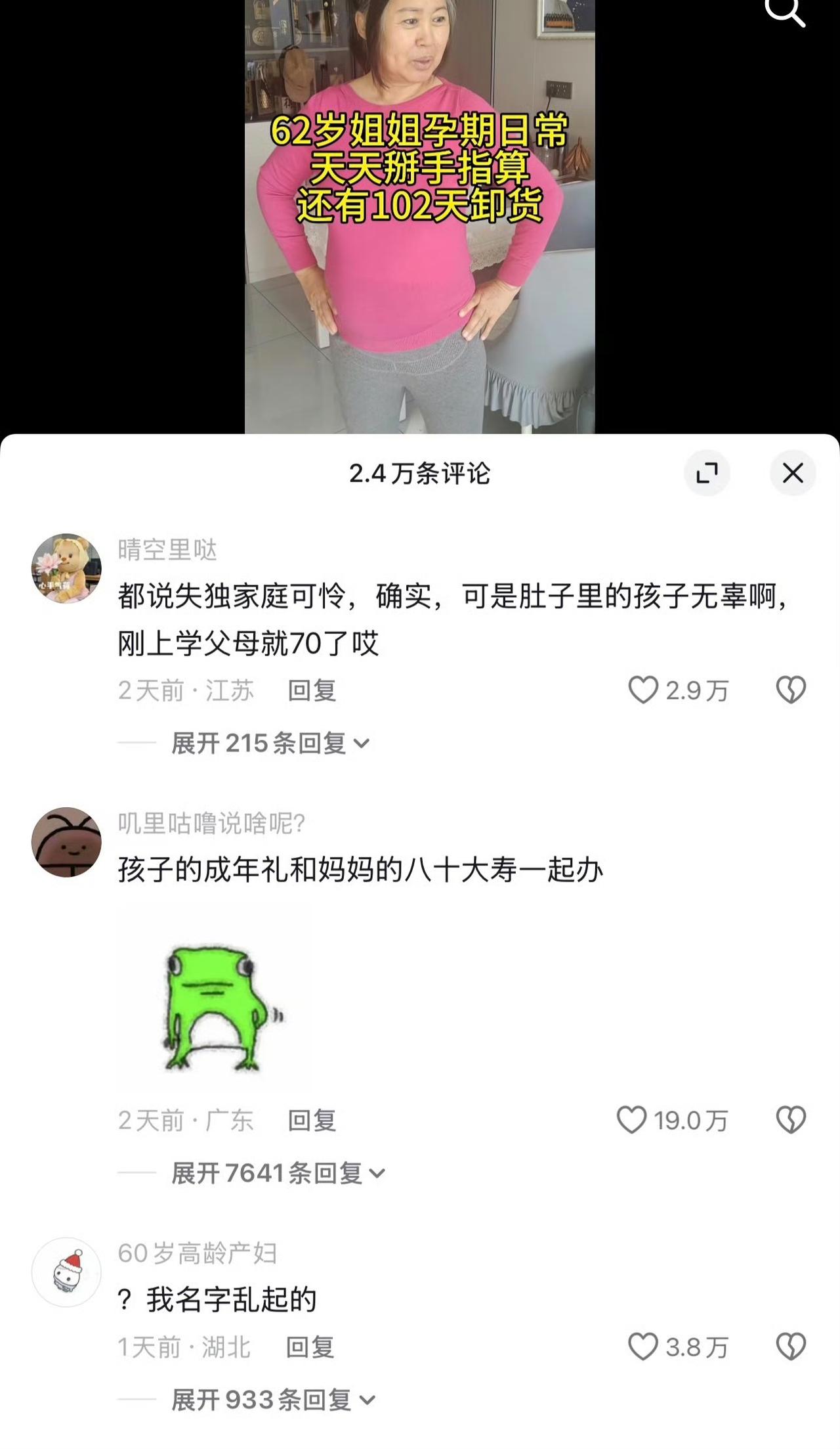 吉林62岁女子怀孕, 对孩子来说实在是太残忍了 命中注定输在起跑线的孩子! 虽说是因为失孤才冒险怀孕,但对孩子来说,极其不负责任且自私,60+基础病已经比25-35岁的成几何倍上升了吧,只考虑自己的感受不考虑孩子愿不愿意,孩子生下来简直天崩开局,只想着自己失去孩子,又何曾想过孩子生下来以后的生活,未来的路还那么长 ! 孩子读幼儿园的时候,将近70岁高龄的她,要陪孩子做幼儿园的游戏、参加幼儿园举办的活动,要登录各种APP辅导孩子完成作业。 小孩18岁的时候,她80岁,必须要人照顾,18岁是还未工作的年纪,没有经济能力,那这个照顾的重任只能留给孩子。 孩子读完大学,不用找工作,就在家里伺候老人,等她过世,想想都觉得恐惧! 这么大年纪,何必呢?现在可以生他,但是将来能确定陪伴他成长吗?人不要只考虑自己!