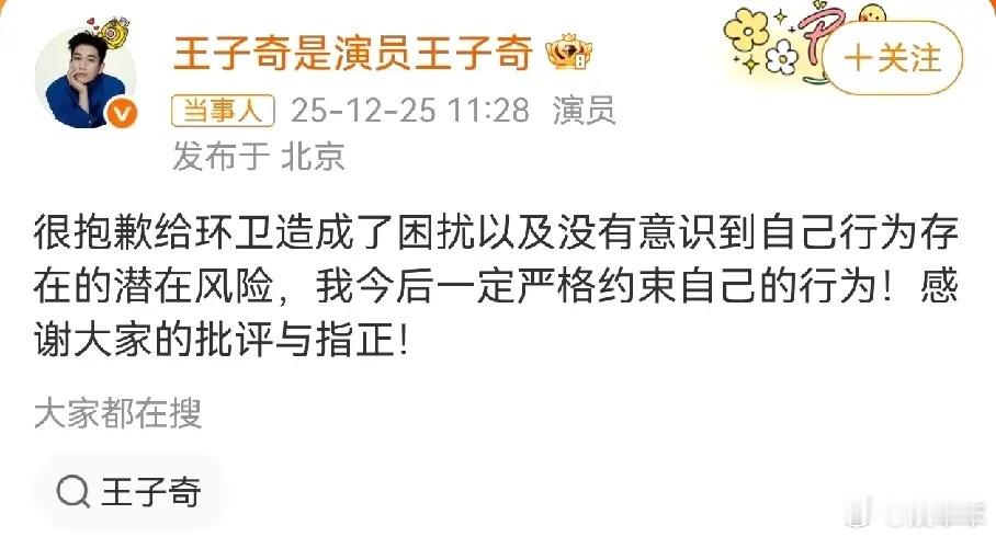 又一个明星道歉了王子奇为自己开车丢烟头道歉“给环卫工人造成了困扰”。有网友认为,看到很多人都这么做,没必要道歉,认错态度良好,本身也不是大事,没必要苛责。也有认为明星毕竟是公众人物,被拍到了,才开始道歉,素质不高。你怎么看?