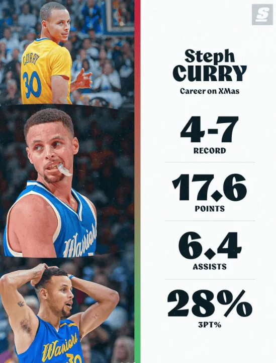 11点NBA圣诞大战,勇士主场迎战独行侠。据统计,库里职业生涯至今共出战11次圣诞大战,战绩为4胜7负,场均17.6分6.4助攻,三分命中率仅28%。nba圣诞大战