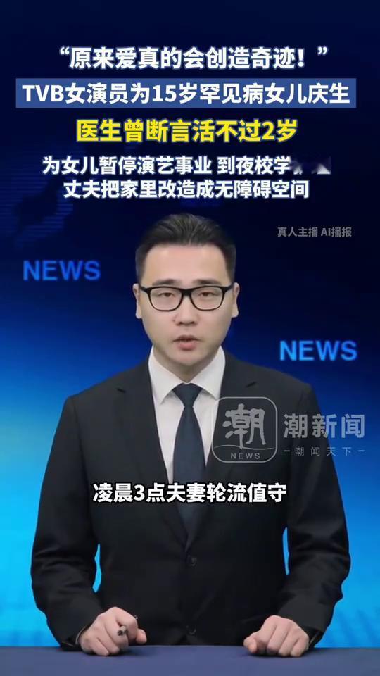 "原来爱真的会创造奇迹!"TVB女演员为15岁罕见病女儿庆生,医生曾断言活不过2岁。 潮新闻主持人胡杨。 TVB女演员为15岁患罕见病女儿庆生,医生曾断言活不过两岁。据红星新闻报道,曾参演《鉴证实录》的TVB女演员钟丽淇大女儿伊莎贝拉在6个月时罹患罕见基因病,医生曾断言她活不过两岁。 为了女儿,她暂停演艺事业,到夜校考护理执照,自学护理技巧。老公把家里改造成无障碍空间,凌晨3点夫妻轮流值守。在夫妻二人3000多个日夜坚守后,终于在12月23日伊莎贝拉迎来了15岁生日。看到一家人的合影,网友们纷纷留言:原来爱真的会创造奇迹。