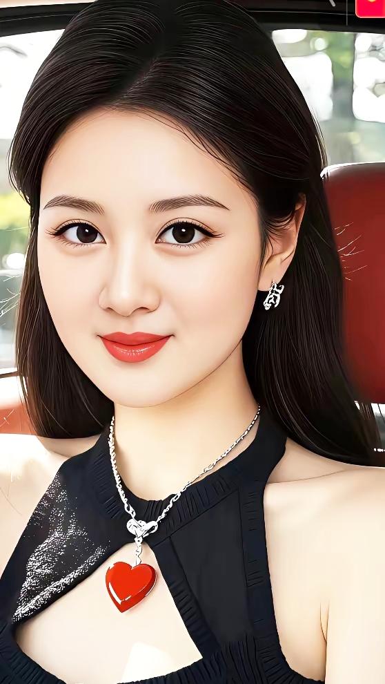 甜美红唇,闪耀耳环,爱心项链,车中自拍,女神范儿