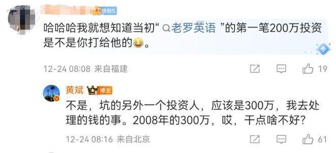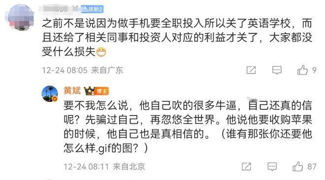 “手撕”罗永浩,必须给黄斌点赞。 12月24日,罗永浩早年做“老罗英语”时的合伙人黄斌突然发文炮轰罗永浩,指出罗永浩创业干一个赔一个,唯一赚点钱的直播业务,又不是他主导的,他只是在台前演戏。 黄斌还回忆了当年与罗永浩的合作经历,声称想起来就生气,罗永浩当年创办“老罗英语”后,却干了数不胜数的蠢事,说了数不胜数的傻话。黄斌还说公司里烂的一塌糊涂,罗永浩却天天在外面吹牛,关键是吹牛自己还能相信。 黄斌说,之所以现在站出来,是因为罗永浩对企业一无所知却自诩为企业家,最近还在互联网上碰瓷去攻击真正的企业家。 有网友想知道当年事情更多细节,黄斌表示当年的事没什么好提的,“他有脸做我都没脸讲,他也很明白不吱声”,“要像他一样把俞敏洪的几句话记一辈子讲一辈子没有正常人能做得到,但他当年那点烂事我也还是记得几件的”。 可能黄斌真的抓住罗永浩的“命门”了,以罗永浩锱铢必较的性格,哪受得了这气,早应该发动反击,并煽动粉丝对黄斌群起而攻之。可惜的是,罗永浩一直默默无声,没有任何回应,像是默认了黄斌的指责。