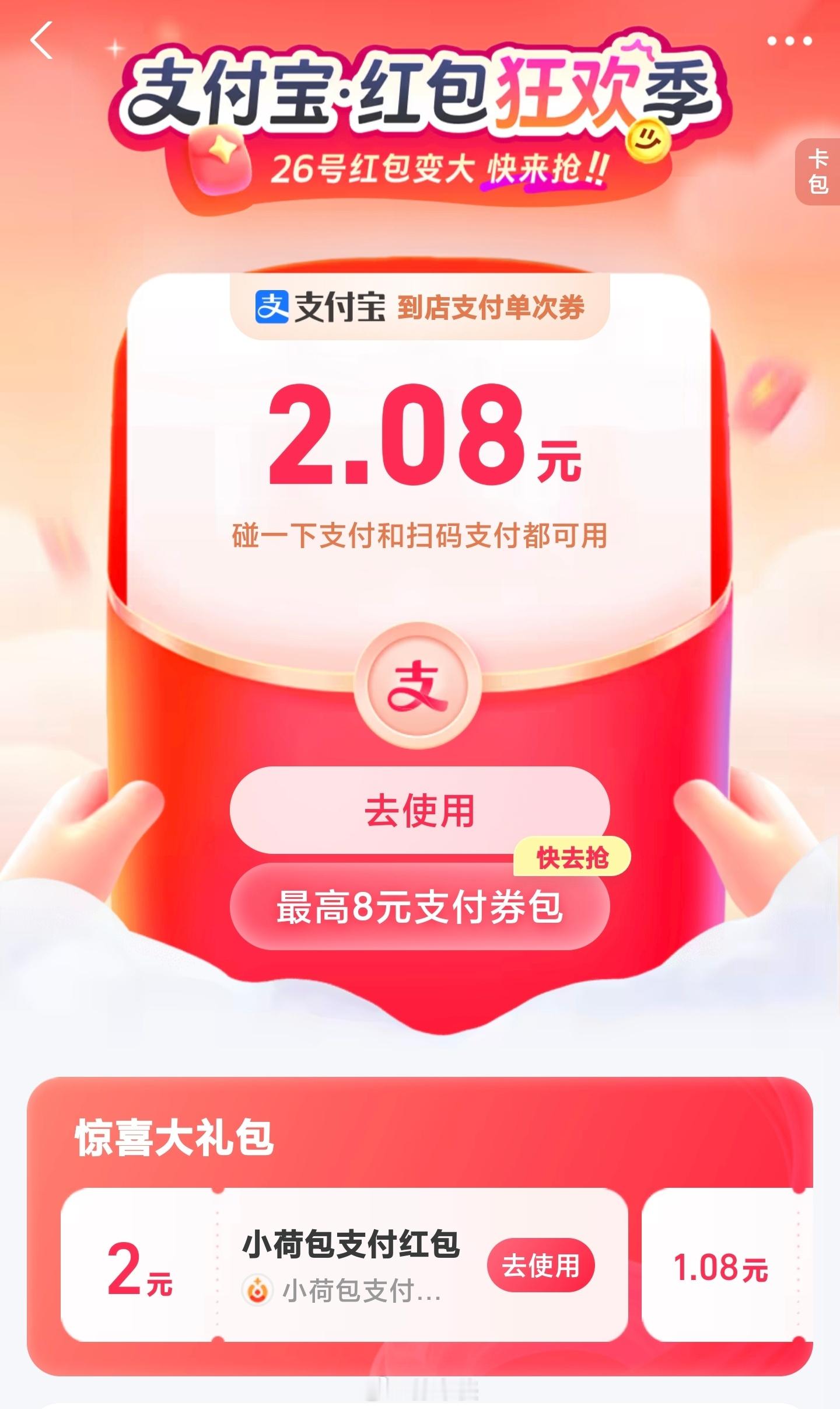 这两天支付宝红包很给力早上给小摩托加油减了2块各位老铁最多领了多少?