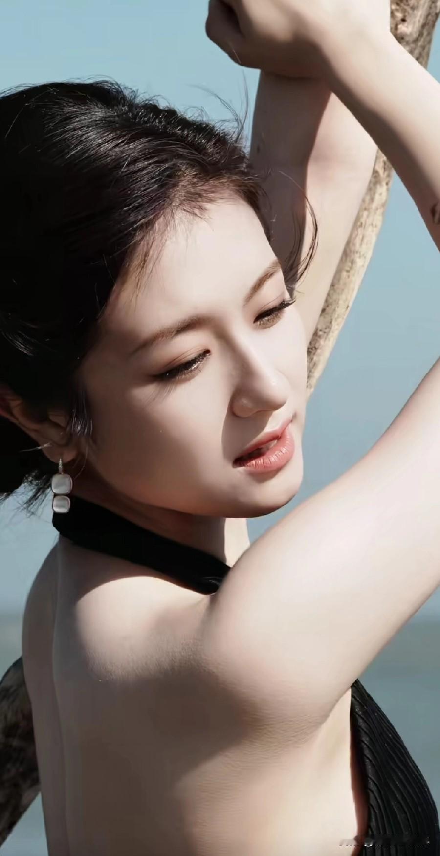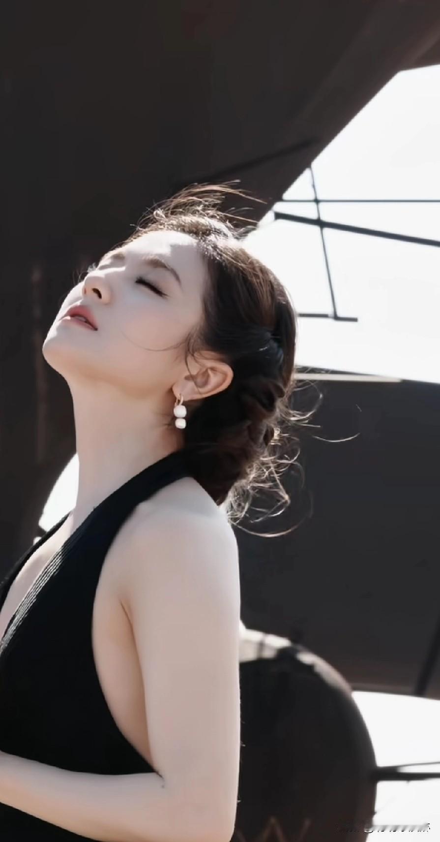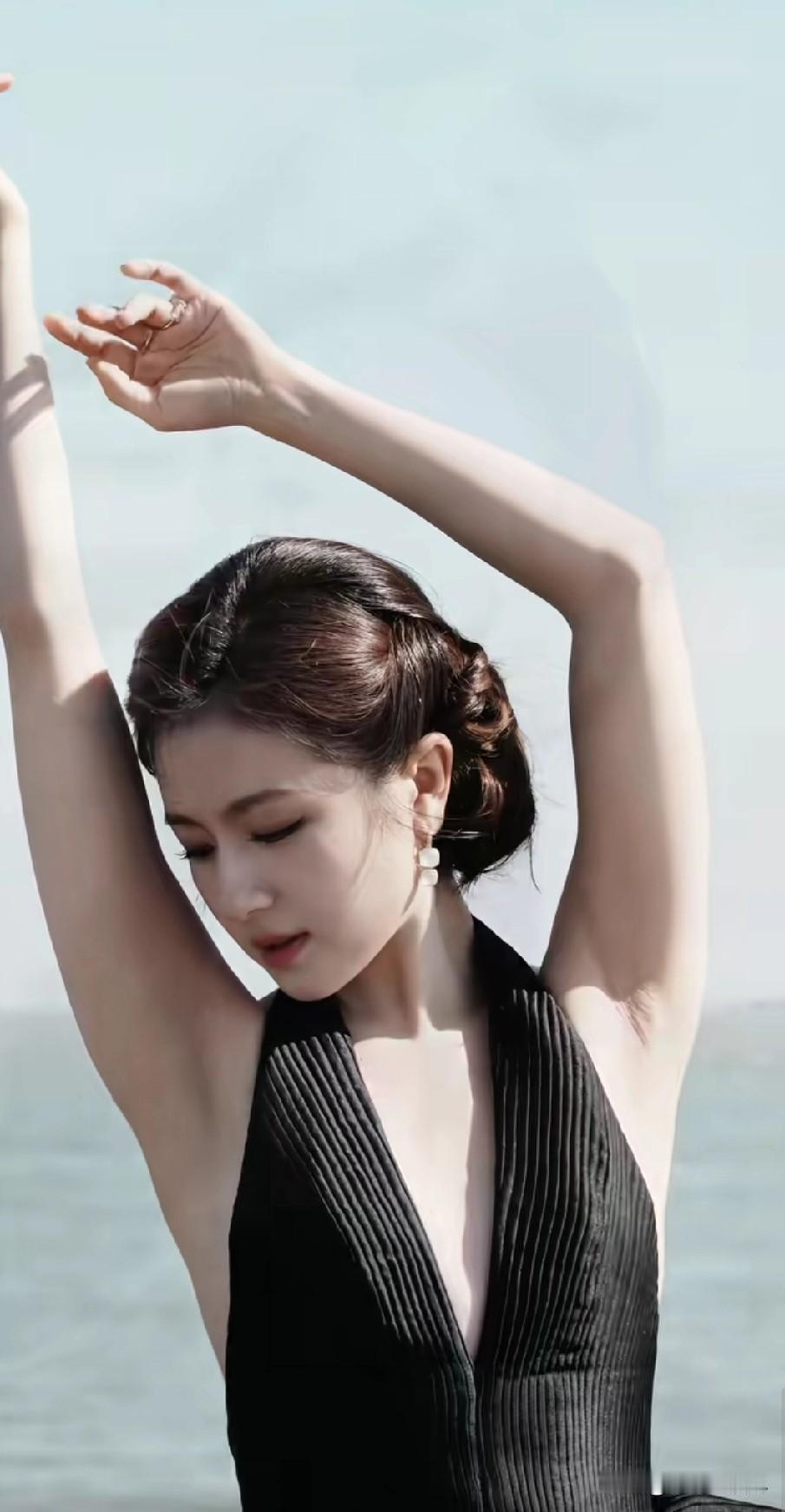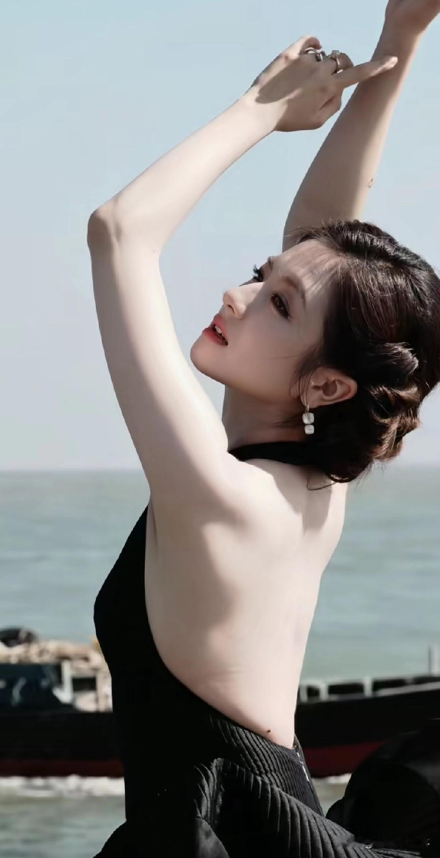优雅黑裙舞者,在蓝天背景下翩翩起舞。——李兰迪