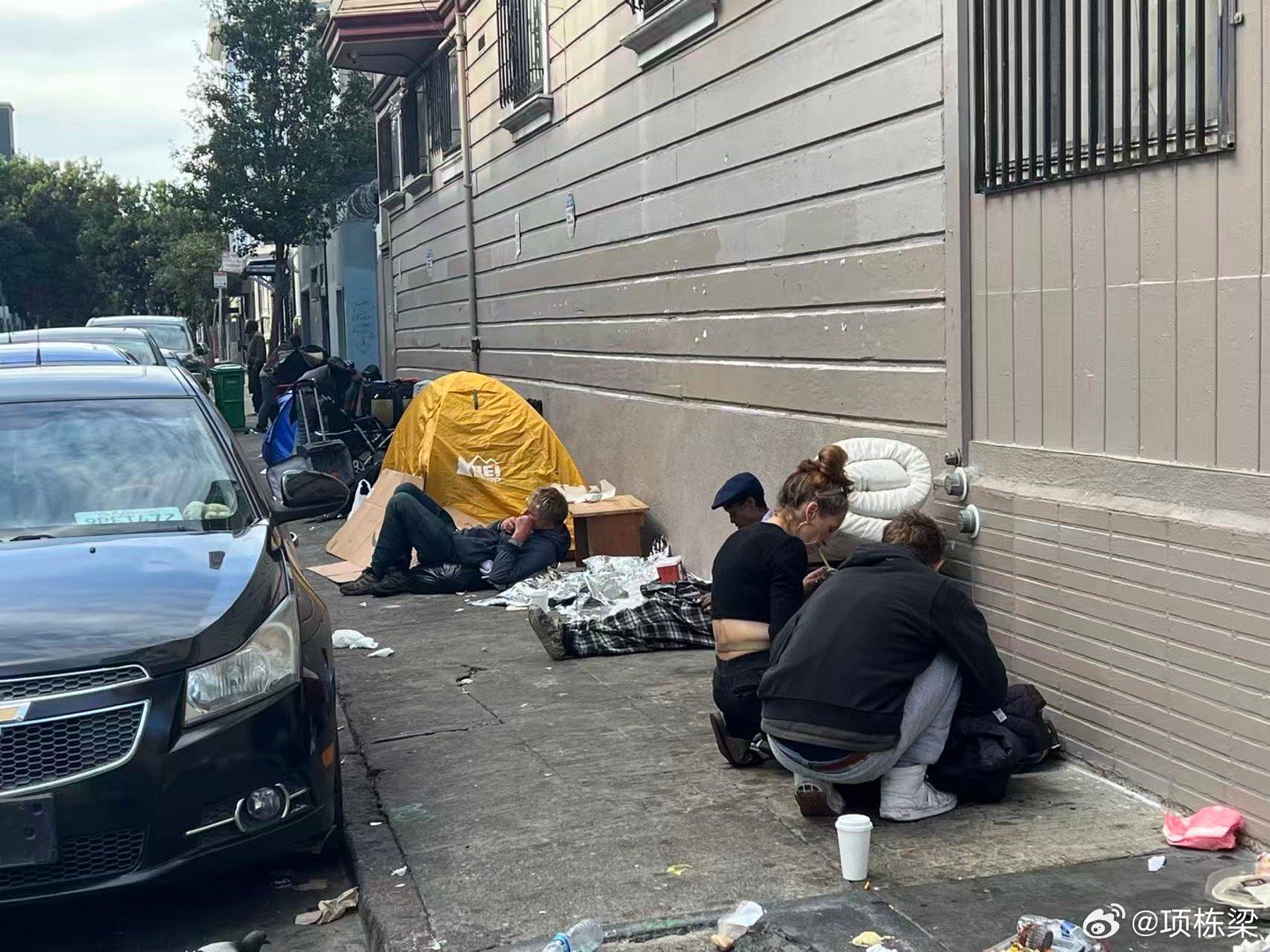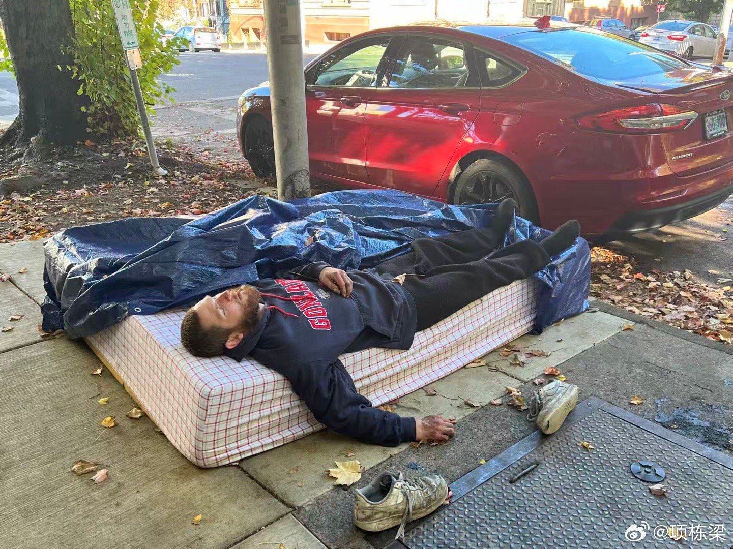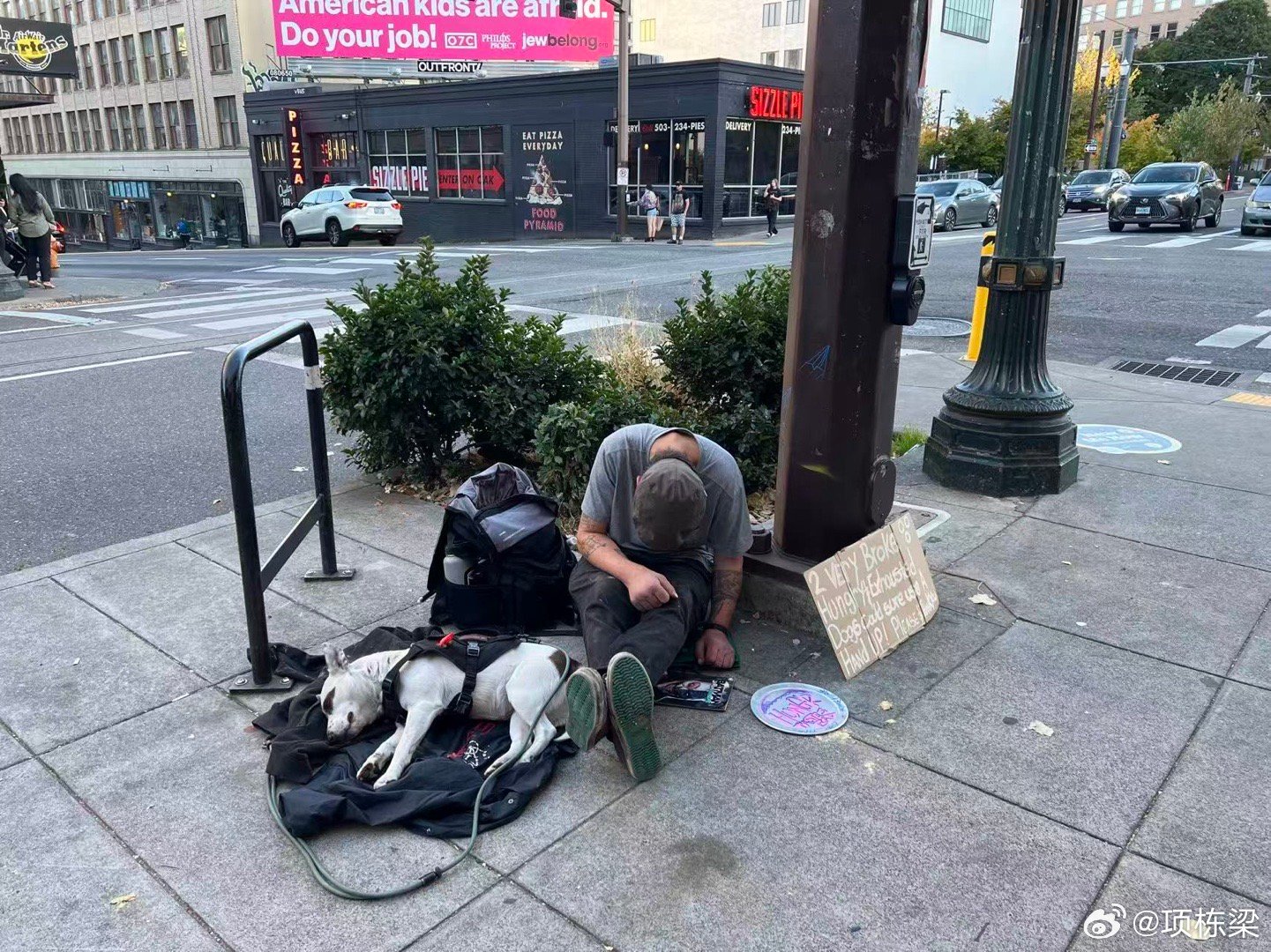 美国斩杀线 真实案例:我在波特兰认识的无家可归女生好多读者私信让我写写美国“斩杀线”的话题,我想应该是大家察觉到了这个话题有些不对劲的地方:美国中产因为一场大病或者吸毒、赌博、大学贷款等情况一夜跌落,沦为无家可归者,被称为“斩杀线”。知道了这些,似乎就让我们在中国的生活更有安全感了?美国存在无家可归者吗?确实存在,我见过。美国存在中产一夜返贫犹如被“斩杀”的情况吗?确实存在,我认识。去年9月,我在美国游学,特别留意记录了很多无家可归者(Homeless)的情况。给我留下最深印象的是在波特兰认识的一位无家可归的女生:(图1)你没有看错,这位衣着体面、气色良好的女生是一名无家可归者,怀里抱着的狗狗是她的宠物。照片拍摄于波特兰一家Whole Foods超市门口,当时我从里面买了些吃的出来,看到她和狗狗坐在路边,身前放了一块纸板,上面写着她住在车里,需要零钱和食物。正好我买了水果,分了她一些,也聊了几句。她是从美国中部一个州过来的,在波特兰上大学,没有租公寓,平时住在一辆车里。她说想等大学毕业后有全职工作了再稳定下来,现在这样挺好。Whole Foods出来的人经常会给她和狗狗带一些吃的,每天花2个小时左右在这里“等待”,所以保安也都认识她,还帮我们拍照。(发布已征得同意)其实最让我惊讶的还是这条狗,养得油光水滑,很显然它一天吃的肉比我要多。而且作为大型犬,主人还给它戴了嘴套,牵了狗绳,可以合理推测,一定也有狗证,打过疫苗。当我们谈论美国的无家可归者时,可能很少有人能想象到这位姑娘也是其中之一。当然,也有一些气色状态没那么好的。(图2)这位大姐也是我在波特兰认识的。当时她侧躺在人行道上,我观察了一会儿发现她没有睡着,就去打了个招呼。她说睡在街上已经3年多了,她喜欢睡在硬的地面上,这样对她的背比较好。我问她,如果我给一些零钱会不会冒犯到她,她很开心,说不会冒犯,正好也需要。然后她提出,希望以后能用她创作的艺术品来回报我,说了好几遍。其实从交流的反应速度、表达方式等情况可以粗略看得出,这位大姐的精神状态不是很好,但情况也不严重,或许这是她露宿街头的原因吧。举这两个例子,并不是说美国的无家可归者都是这样的情况,而是这两位看起来没什么危险性,所以我才有机会去攀谈,了解到一些信息。街头见到更多的无家可归者,是下面这种情况:(图3)还有更邋遢一些的这种情况:(图4)在加州的旧金山,见到了行程中数量最多的无家可归者。这位男士也是带着狗,但个人卫生情况和精神状态比波特兰的女生明显就要差一些。(图5)(图6)(图7)这两位很容易能看出来是药物滥用(Drug Abuse)的受害者,中国语境里一般称他们为吸毒者,但在美国,药物滥用是一个和中国“吸毒”略有不同的社会问题,这个说来就话长了,以后找机会再展开。我还特意去旧金山无家可归者聚集的街区考察了一下,的确是很令人忧心。(图8)2024年最新统计,美国无家可归者数量为77万,是当前美国社会非常突出的一个社会问题。美国的无家可归者中既有文章开头那位女生那样比较体面的,也有第二位姐姐那样保持基本体面的,还有一些是身体和精神状态显著异常,个人卫生健康状况非常糟糕的,大家无家可归的原因也各不相同。在美国,无家可归者的数量和构成也有相对完善的统计,有非常多的社会组织在开展无家可归者的救助帮扶工作。当地朋友告诉我,美国大学生开展社会实践研究或者从事公益事业最热门的方向之一就是无家可归者帮扶。不过,美国无家可归者的形成有着特定的社会结构原因,并没有哪个公益机构或政府组织能一劳永逸解决这个问题。作为一名中国公民,很自然地就会想到:那,中国有多少无家可归者呢?他们的情况如何?很遗憾,中国并没有专门的街头流浪乞讨人员统计数据,只能找到一些侧面参考。据《中国社会报》报道,2023年,民政部门累计救助流浪乞讨等各类临时遇困人员70.6万人次。这个数字一方面会有一人救助多次的重复,另一方面又没能覆盖到全部流浪乞讨人员,所以并不能直接用来估算中国无家可归者的规模。信息来源:《中国社会报》2024年1月9日报道网页链接不过我恰好在广州做过一些“街友”的帮扶工作,有了解到一点点一线的真实情况。(图9)广州有专门开展街头露宿人员帮扶的公益机构,叫暖加公益,他们称呼露宿人员为“街友”,每周二晚上会固定去给街友们送饭、送水、送卫生用品,我也参与过。比如(图10)这位街友,住在某立交桥底下,用平板车和泡沫箱搭了一座床铺,整个人还是比较干净体面的。在他床铺的上方,有两位少年正在玩滑板,这里是他们探索极限运动的游乐场。时空和命运在这一刻交错折叠。广州的街友同样构成非常多元,既有年老体弱的乞讨者,也有年轻力壮甚至学历很高只是暂时遇到工作困境的人,很多露宿街头者白天会打一些零工,但受限于各种因素,他们没有全职工作。我在“帮困境人士买饭3天”项目中也接触到一些露宿街头者,他们让我点外卖的地址会选在某商场门口或者某餐厅门口(有免费WIFI)。街头流浪人员也有季节性迁徙的情况,冬天,广东福建等地的露宿者会显著增多,其中一些是从北方和中部省份迁徙过来的。广州的气候温暖,对露宿者来说过冬相对容易一些。之前我的朋友林君君在福州也拍摄了一些露宿街头者的