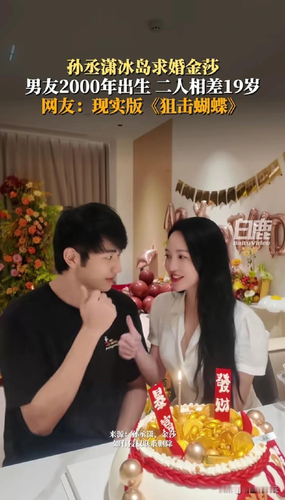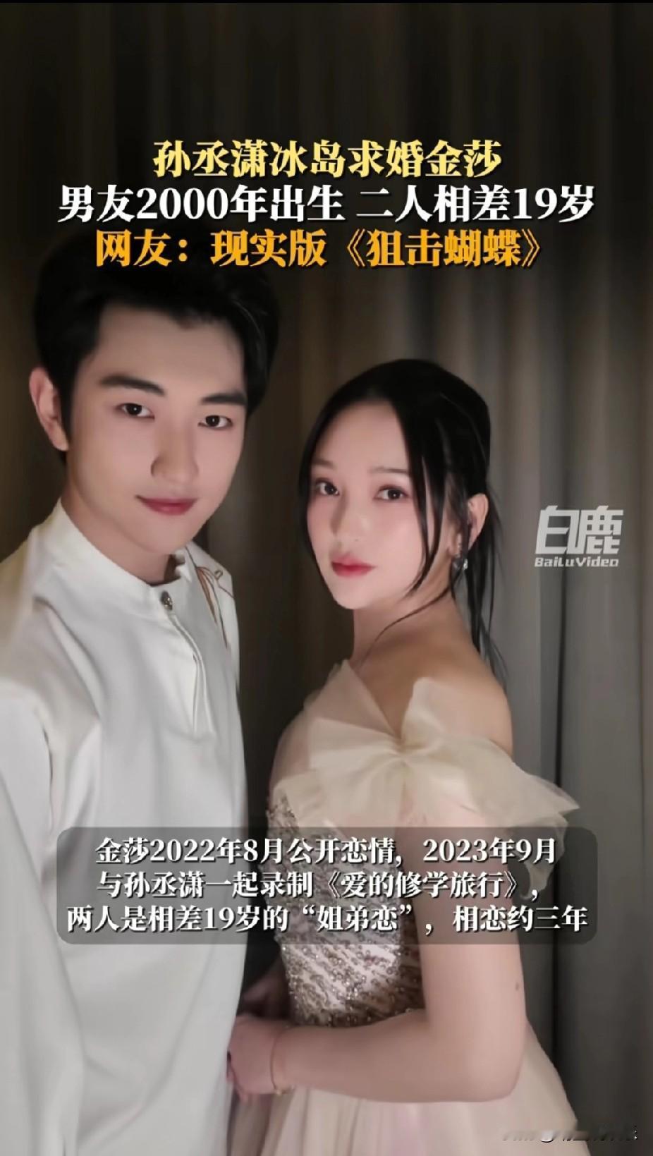 孙丞潇居然向金莎求婚了! 之前只觉得这对姐弟恋甜, 他们还一度是最不被看好的姐弟恋, 万万没想到这对真的能修成正果, 我们真的低估了爱情的魔力, 即使是相隔19岁的年龄差又如何, 终究是阻挡不了他们爱的脚步, 很多人说从质疑金莎→理解金莎→想成为金莎, 金莎的幸福肉眼可见,眼下弟弟真的做得很好,就是不知道未来能不能一直坚持对金莎无微不至的好, 大家觉得金莎选择和孙丞潇步入婚姻会一直幸福下去吗?
