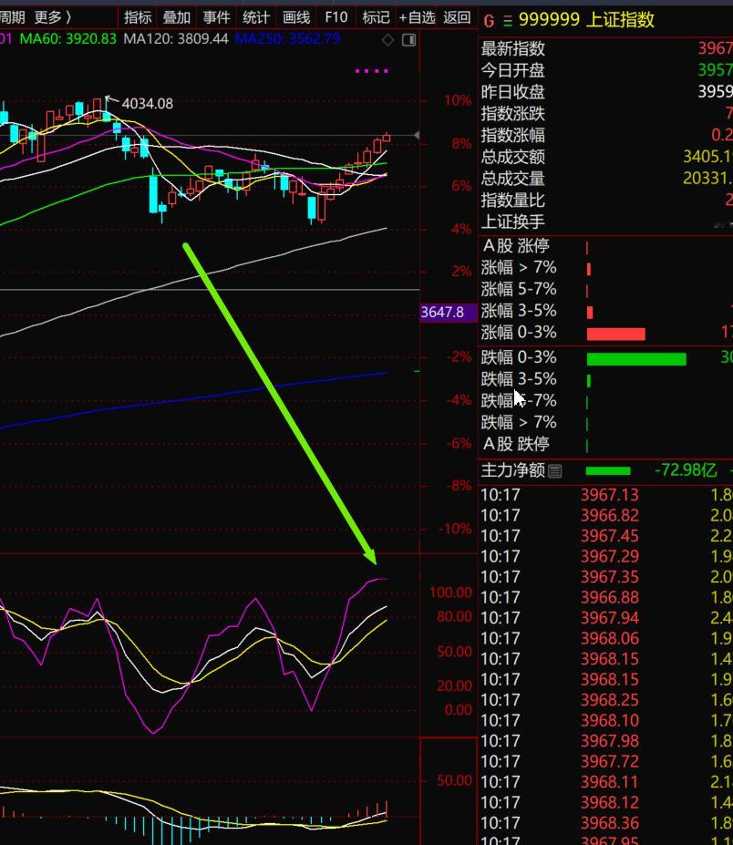 S-市场确实很强势。这几天朋友们在我的评论区互动,提到的个别板块、个股都表现很好,感谢大家的评论和互动,我也跟大家学习了不少,确实也感知到了这个市场永远要谦虚对待,自己的认知需要不断更新。这是真话。 当然,有些东西呢,是亘古不变的,例如现在KDJ出现了钝化,我是不会在这个位置去开仓上车的。这是我二十多年来交易的最基本的一个道道之一。我会在后面上车,因为3800这个底比较扎实。但绝对不会在上涨到这个程度仓促上去,而是会等到KDJ指标出现修复的时候再上。哪怕是调整1-2天,那也行。财经