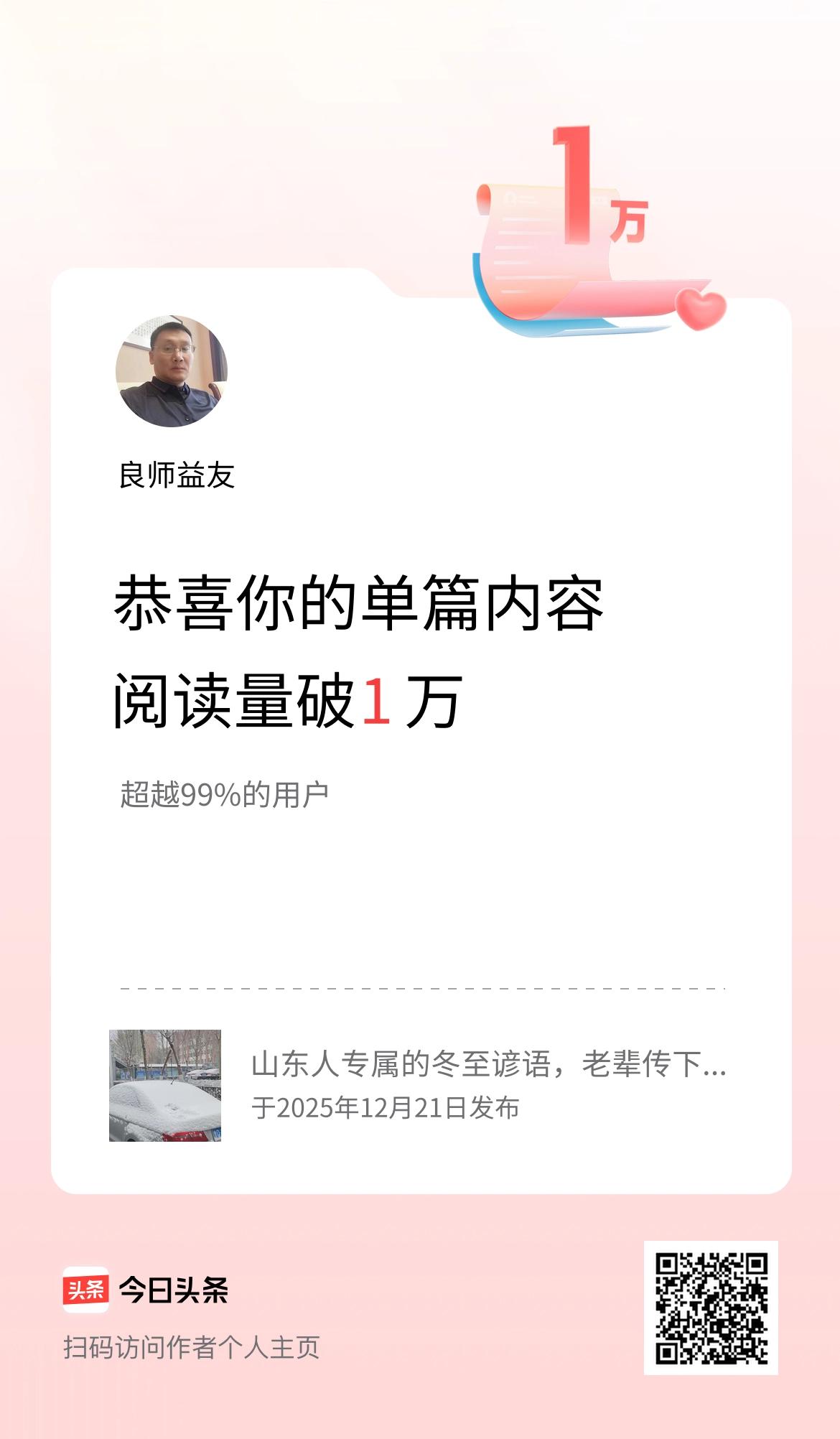没想到一篇关于冬至谚语的分享,在头条居然破万了!看来老辈的智慧还是很有共鸣的,下次再挖点家乡干货出来~
