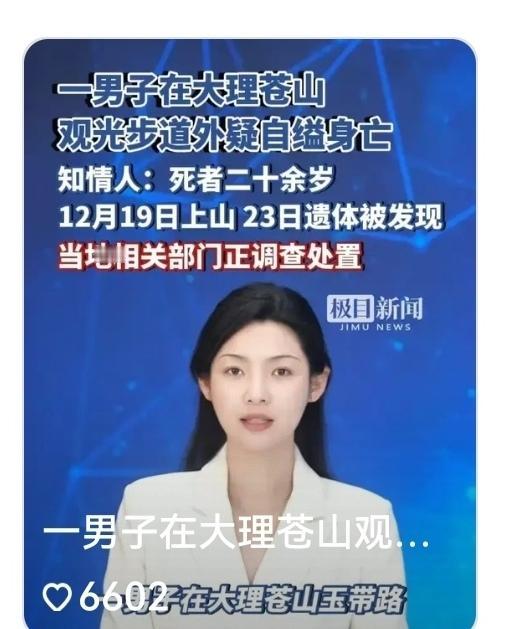 好惋惜!二十多岁,本该是人生最鲜活的年纪,是揣着一腔热血奔赴山海、对未来满是憧憬的阶段,可这个外地男子,却把苍山的玉带路变成了自己生命的终点!独自乘索道上山的背影,想来满是孤绝。他在缆车上看着苍山的云海翻涌时,心里究竟藏着多少无人知晓的委屈与绝望? 四天的时间,苍山的风掠过他的身体,绿植将绳索悄悄遮掩,地面上来来往往的游客,谁也没察觉到铁围栏外侧那令人心碎的一幕。 直到无人机的镜头偶然扫过,这场无声的告别才被发现。皮肤发紫、带着异味的遗体,颈部那端固定在围栏的绳索,还有衣物里静静躺着的手机,每一个细节都像一根针,扎得人心里发疼。 那部手机里,会不会有没发出的消息,没打完的电话,或是藏着他最后时刻的挣扎?我们永远无从知晓了。 苍山的美,本是用来治愈人心的,却成了他选择与世界诀别的地方。二十多岁的生命戛然而止,留在苍山的,除了一声叹息,更该有对生命的敬畏,和对身边人的多一份关心。