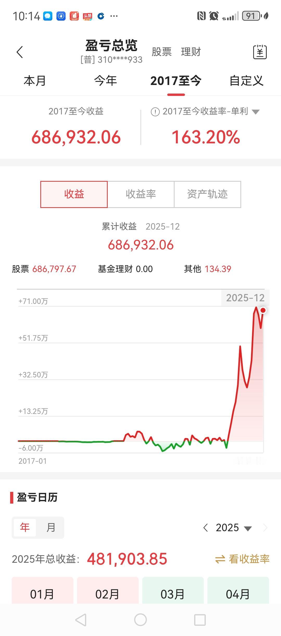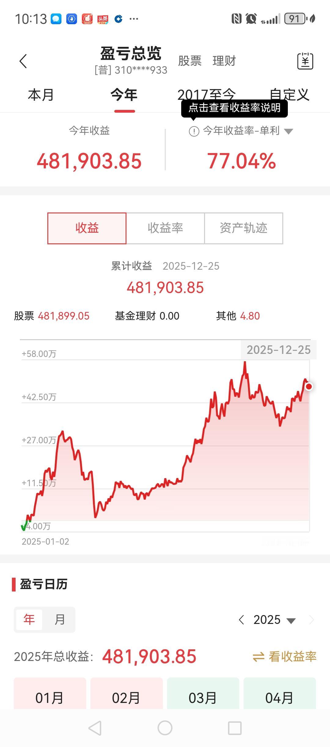 这个账户,今年的收益接近80%,也还行。 目前持有两个股票,一个是机器人板块,另外一个是有色金属,白银业务是其主营之一。 目前这两个股票量价配合非常理想,有望加速上涨。所以说春节前收益突破100%是完全有可能的。 2026年,这个账户值得期待!