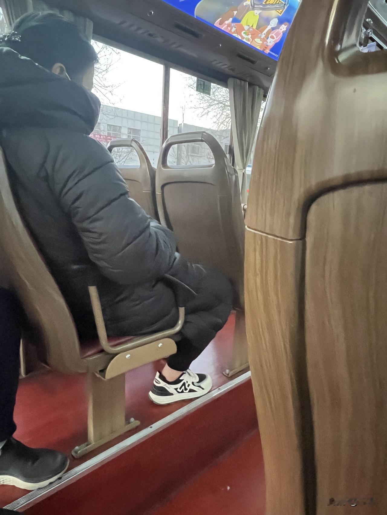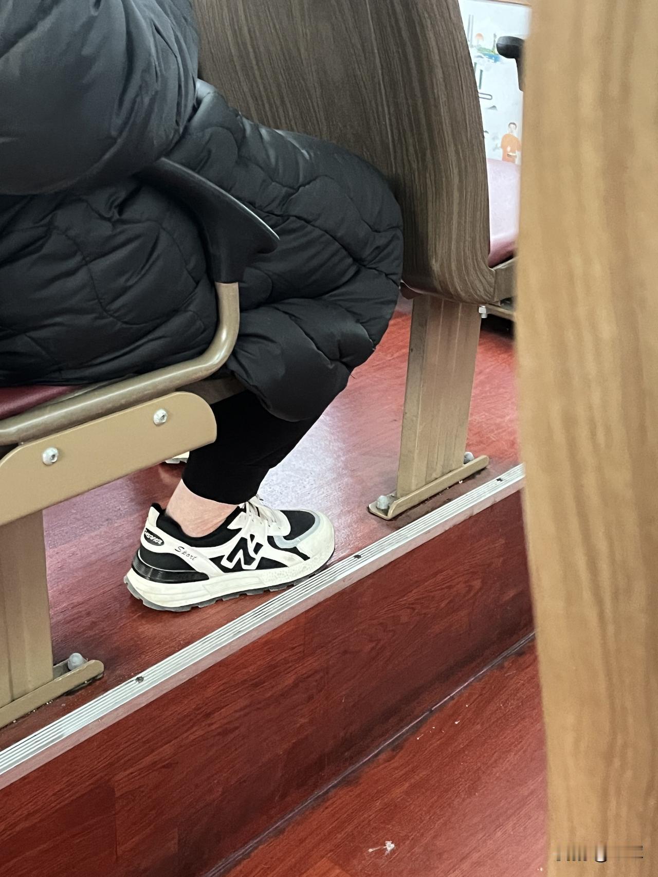 今天天气是零下八度到一度。 天气也算冷吧!竟然有的人露脚脖子! 今天去医院给老妈开药,我是坐公交车去的,因为医院的停车场根本就没地方停车,如果开车的话就是进医院停车场还要排半天队。 我可不想受那个罪,为了停车还要排队,有时候排队也没地方,坐公交车多省事儿啊。 今天天气也算冷吧,我穿了一款短款的羽绒服,就感觉后背发凉,后悔不如穿那件长的出来了,因为家里面暖气太暖和了,根本就感觉不到外面的寒冷。 不过车上也有暖气,一点都不冷,但是等车的时候冷啊。我一上车就看到前面坐着一位女士身上穿着一件长款的厚羽绒服,但是她的脚底下穿着一双鞋竟然没有穿袜子,露着大脚脖子,那脚脖子不冷吗? 我正好坐在她的后面,就偷偷拍了个照片。看来人家的脚脖子还是很抗冻的。 我就怕脚脖子冷,到冬天穿鞋子就穿高腰的靴子才觉得暖和。 到冬天这样的鞋子我都不穿,我就嫌冻脚,不用说再露个脚脖子了。 真佩服这位女士,大冷天露个脚脖子,我真想问一下他,你冷不冷呢? [捂脸][捂脸][捂脸]