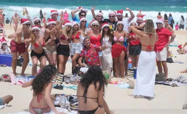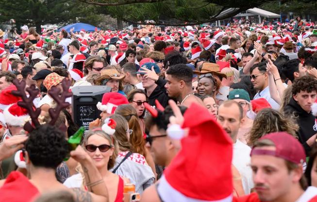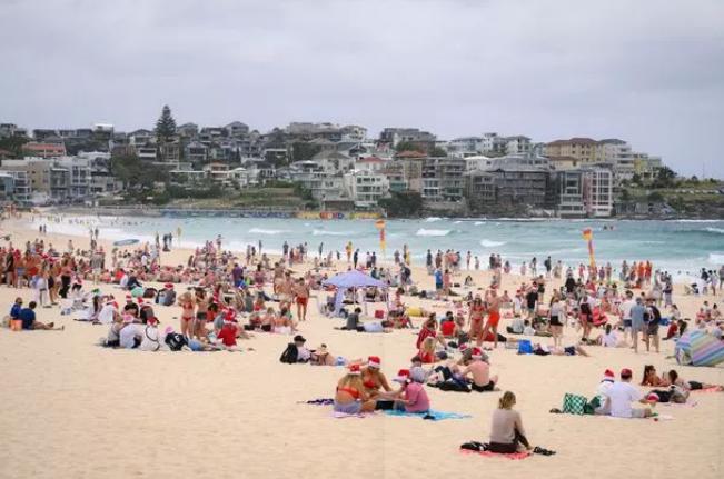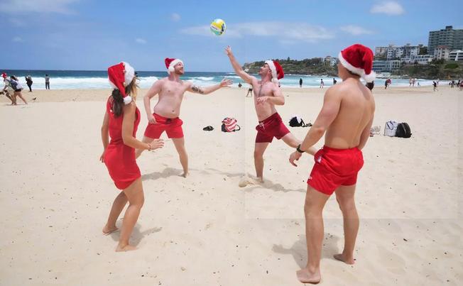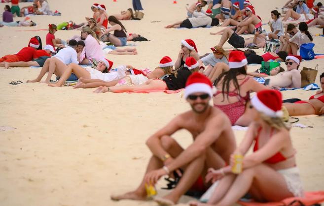 圣诞假期中的邦迪海滩,节日氛围正浓 在恐怖分子制造了震惊全球的枪击大案后,澳大利亚民众重返这处位于悉尼最著名的景点。此时,邦迪海滩的圣诞节气氛正浓,挤满了穿着节日泳装的海滩游客,他们沐浴在南半球夏季23摄氏度的高温中。 坚韧的澳大利亚人决心为邦迪海滩带来节日欢乐,哪怕枪杀在这里制造了骇人的命案,他们纷纷涌向闪闪发光的沙滩,以庆祝圣诞节的方式,展现出一种抗争精神。在海滩上,可以看到一片红色圣诞老人帽的海洋,很多人把自己打扮成圣诞老人,大家似乎不愿让恐怖分子偷走节日期间的欢乐。