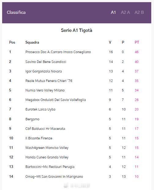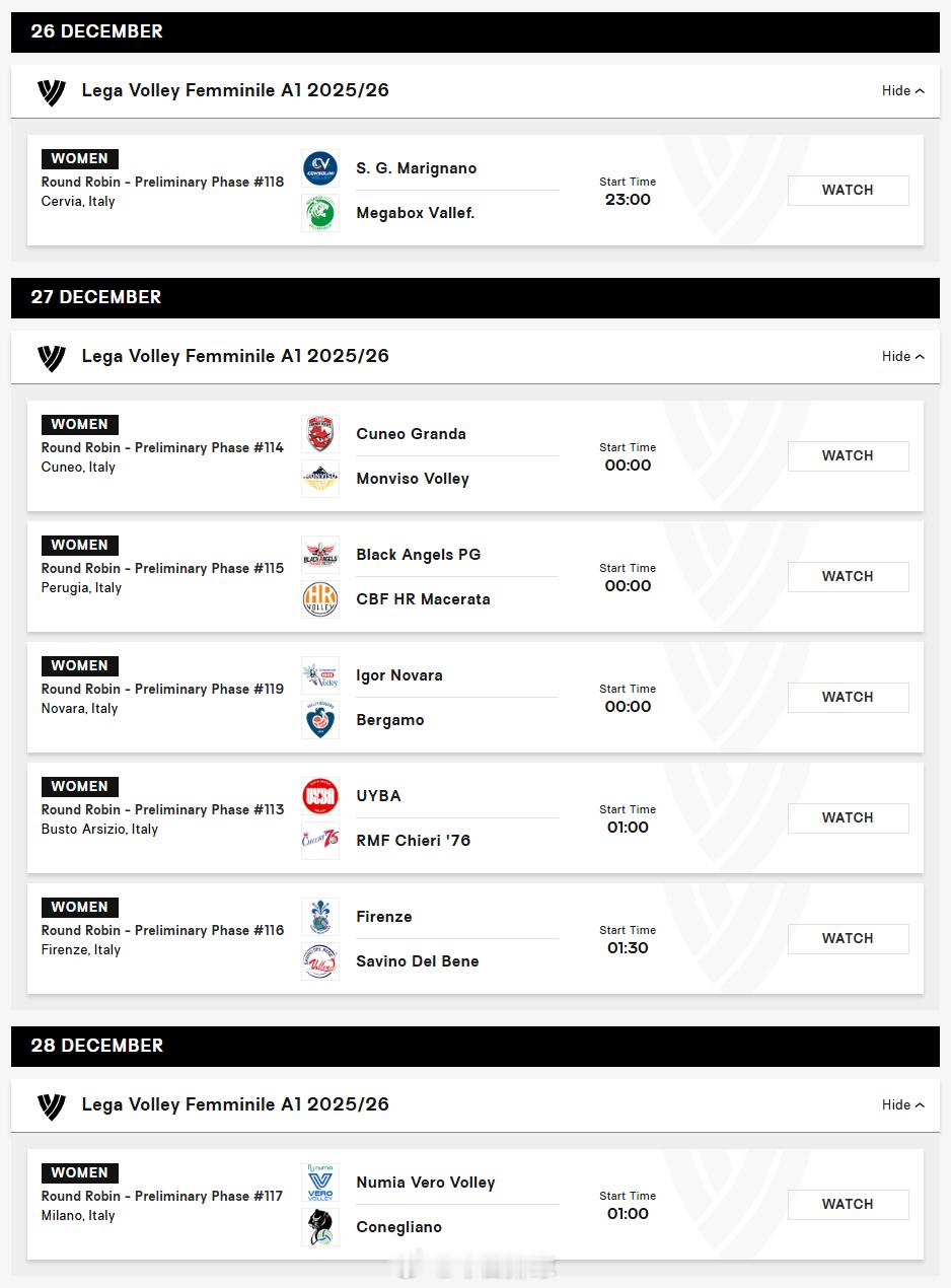2025-2026女排意甲 常规赛第17轮当地时间今天(26日)开打,北京时间今晚23:00,庄宇珊 效力的圣乔瓦尼将在主场迎战瓦莱福利亚。在前16轮的比赛中,瓦莱福利亚9胜7负积26分在积分榜排名第六,而升班马圣乔瓦尼目前是3胜13负积10分排名垫底(图一所示时间是北京时间)。