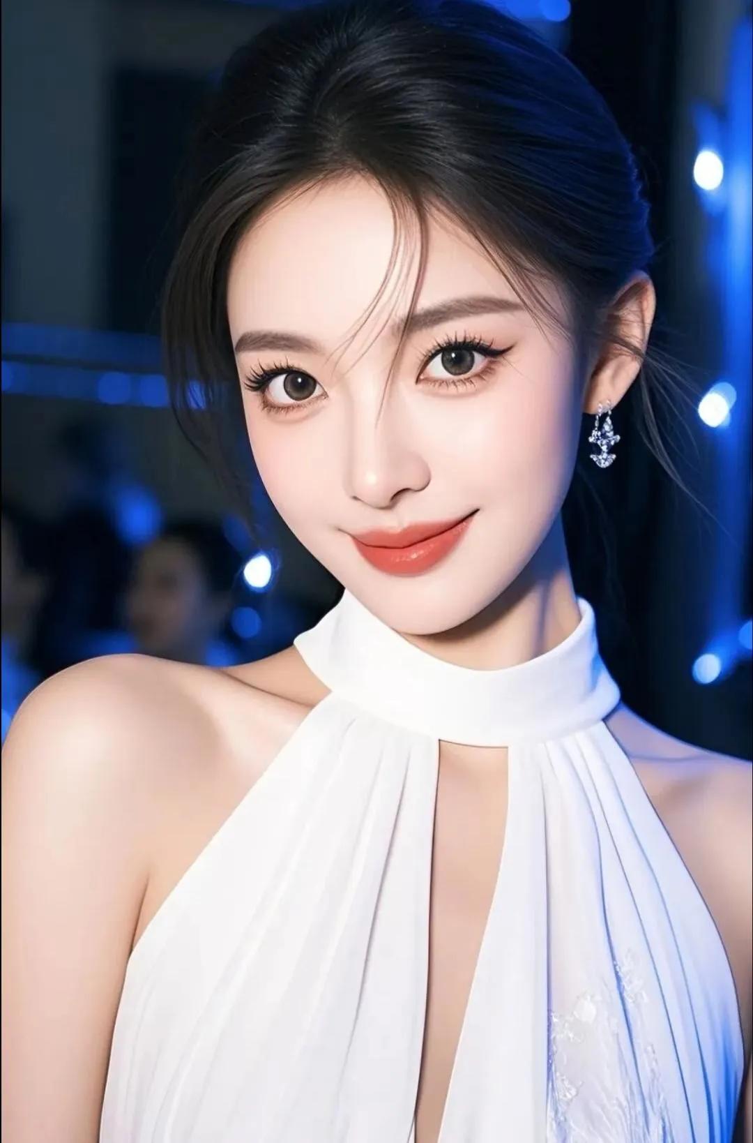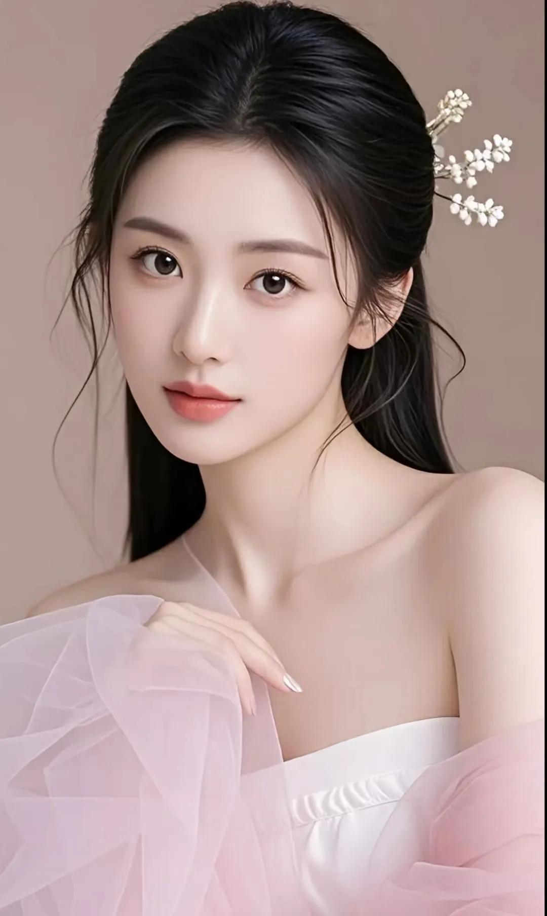 惊艳的古典美人,红唇白衣,宛如画中仙子。