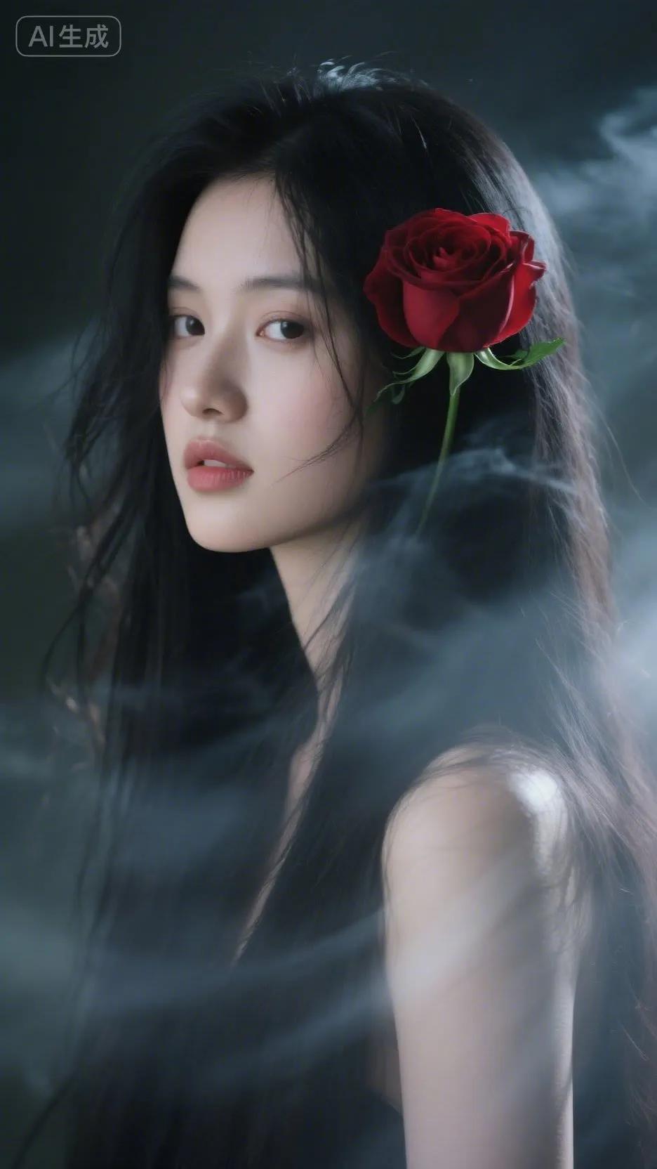 “红玫瑰与黑发女郎的梦幻邂逅”🌹💃🌟