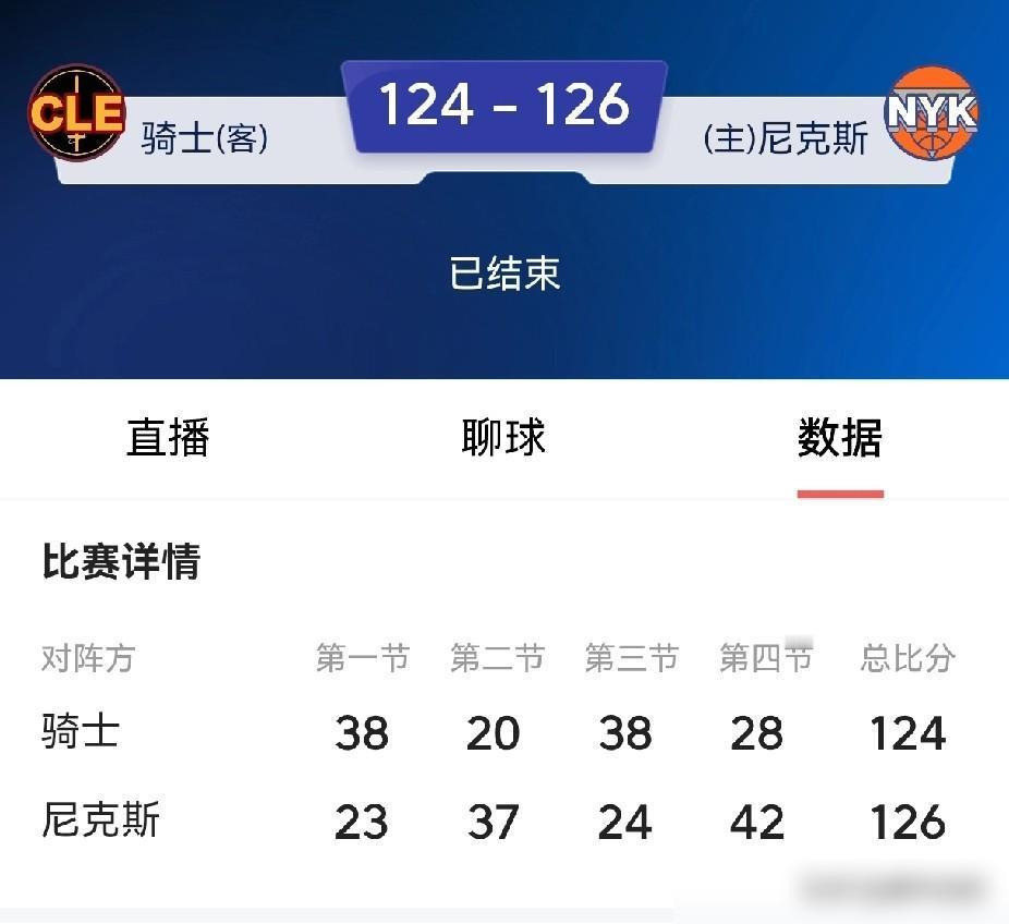 两队像是商量好了一样!今天的首场圣诞大战,尼克斯队在第四节完成大逆转,最终以126-124战胜骑士队,拿下了本场比赛的胜利。 尼克斯在自家的麦迪逊广场花园,顶着全美直播的压力,跟骑士队硬生生把球赛打成了“回合制”的心跳游戏。 我特别在意这比分的对称美学,两边真的不是拿了剧本吗?首节骑士先赢15分,次节尼克斯就回敬17分;第三节骑士又拉开14分,末节尼克斯竟然能生生填平并反超16分。 这种“你赢一节、我拿一节”的节奏,简直是百年一遇的戏剧性,感觉没点大心脏的球迷真看不了这场,起伏太夸张了。 大家都盯着米切尔和布伦森这两个核心球星看,但我觉得,今天尼克斯能从大坑里爬出来,全靠那几个“狠角色”在卖力。 最戳我的细节是罗宾逊,一个人疯狂抢下8个前场篮板,这在焦灼时刻简直是救命的二次进攻机会,太顶了。 再加上克拉克森和科勒克联手轰下的10记三分,外线火力直接把局势给逆转了,这几个角色球员才是今天的真大腿。 说实话,这种球星负责华丽、蓝领负责硬刚的比赛才最热血,尤其是在麦迪逊广场这种地方赢球。 可能这就是圣诞大战的魅力,不到哨响那一刻,你永远不知道剧情能跌宕起伏成什么样。