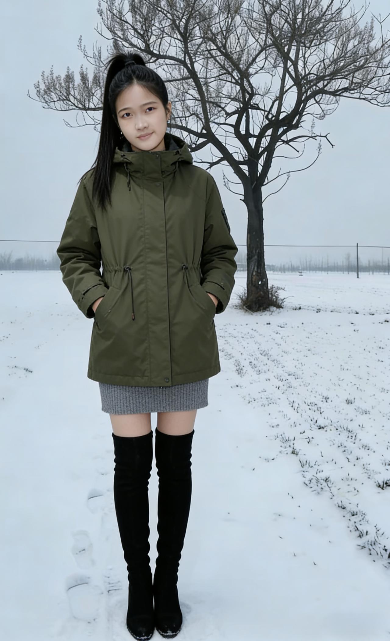 针织裙的边,露着一点温柔 雪粒打在外套上,碎成细响 她不躲,只是静静站着 前路虽寒,心里却火热滚烫 ~ 不必扮柔弱,不必藏锋芒 在雪野里,活成自己的太阳 外套是铠甲,靴子是翅膀 一步,便能踏碎雪野的苍茫