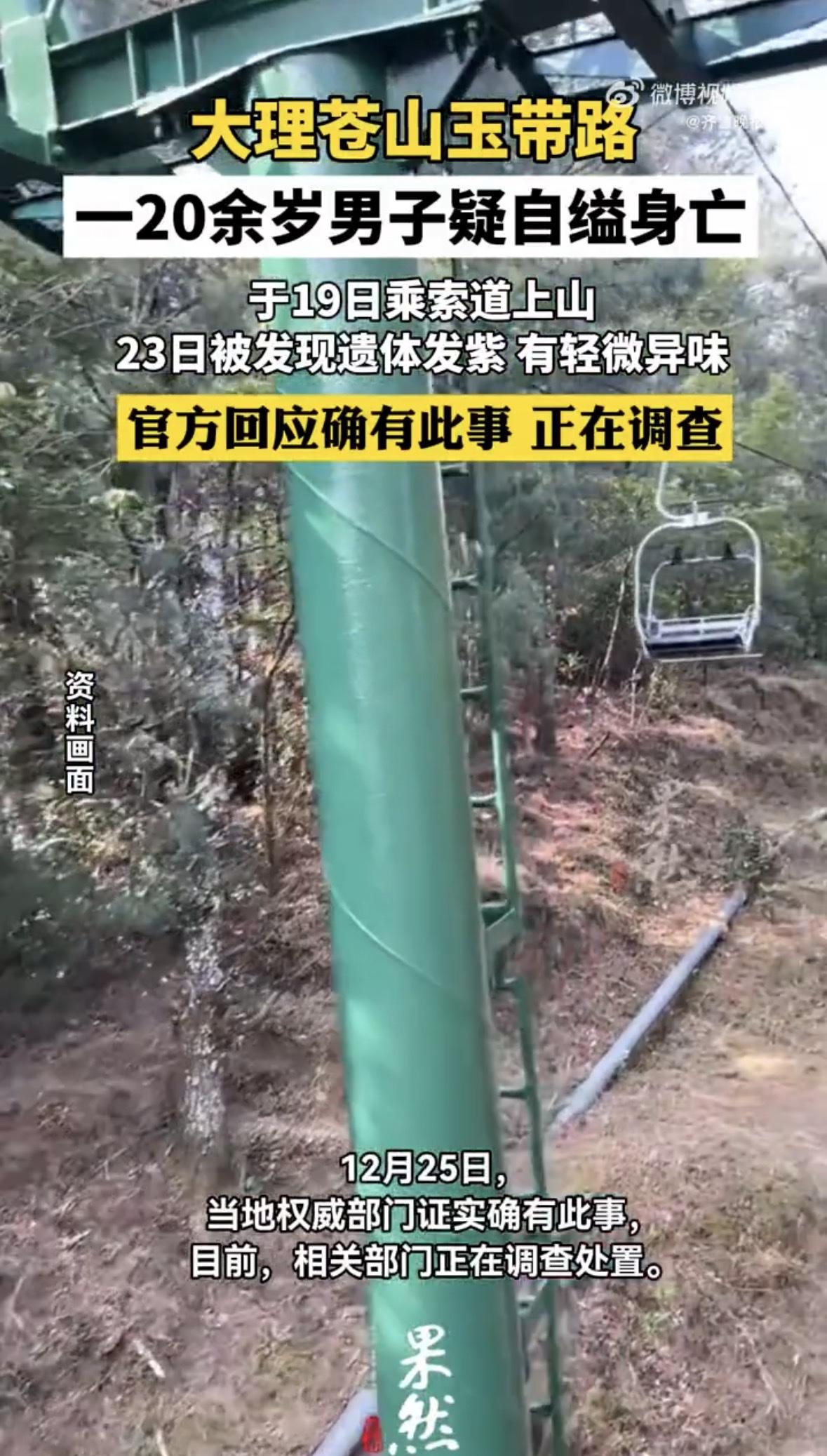 在风景如画的苍山玉带路,一个年轻人在这里结束了自己的生命。 他才二十多岁,外地人,独自乘坐索道上山。他衣物里的手机,是否曾无数次点亮又熄灭,却最终没有拨出那个能拉住他的电话?被发现时遗体皮肤发紫,带着异味,可以想见他在这个本该充满生机的年纪,经历了怎样无人知晓的绝望。 现场描述里,那根“不粗壮、不显眼”的绳子格外刺眼。它似乎隐喻着某种决心,又透着无声的呼救——若有人能早一点,再仔细一点地留意到该多好。 生命的选择权永远在自己手里,我始终相信,再黑的夜也终会天亮。陌生的年轻人,愿你在另一个世界找到宁静。更愿所有正在经历艰难的人,能再给自己和这个世界多一次机会。活着,才有万千可能。 此事已获相关部门证实,正在调查。我们关注,不仅为真相,也为更多可能被忽视的呐喊。