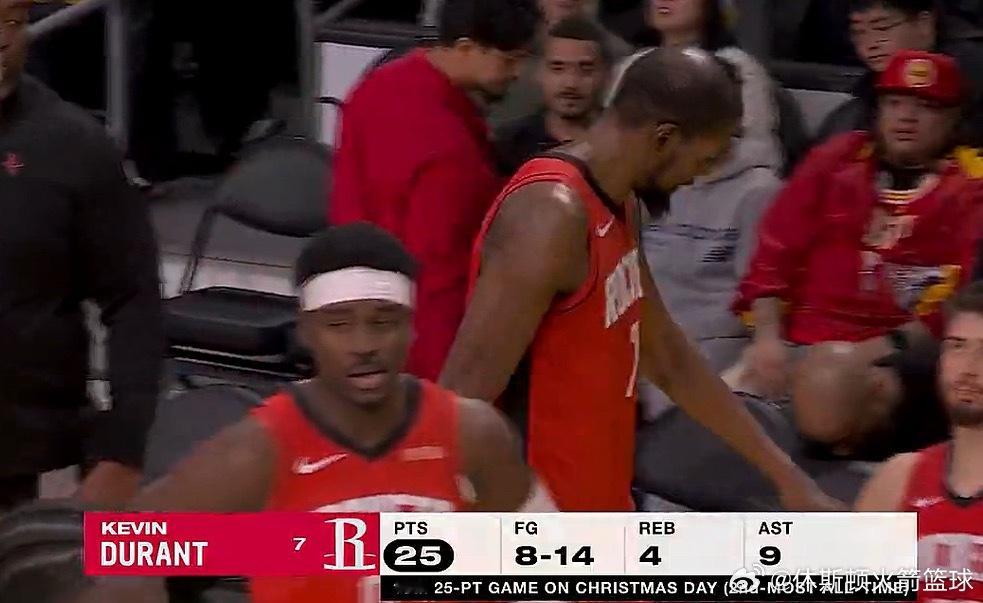 休斯顿火箭 NBA球员评分 杜兰特-我的评分:下班过节!杜兰特今日14中8拿下25分9助攻4篮板🔥这是阿杜生涯第10次在圣诞大战拿下25+,排在NBA历史第二🔥nba趣评分 火箭vs湖人nba圣诞大战