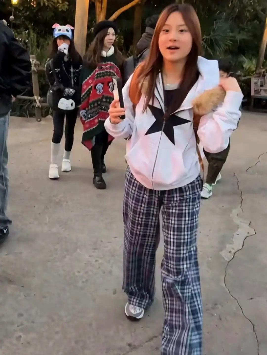甜馨去游乐园,脸吃胖了真像贾乃亮!小姑娘穿着格子裤和运动装,就是13岁初中生该有的样子,孩子气十足,算是难得不研究打扮的星二代了!