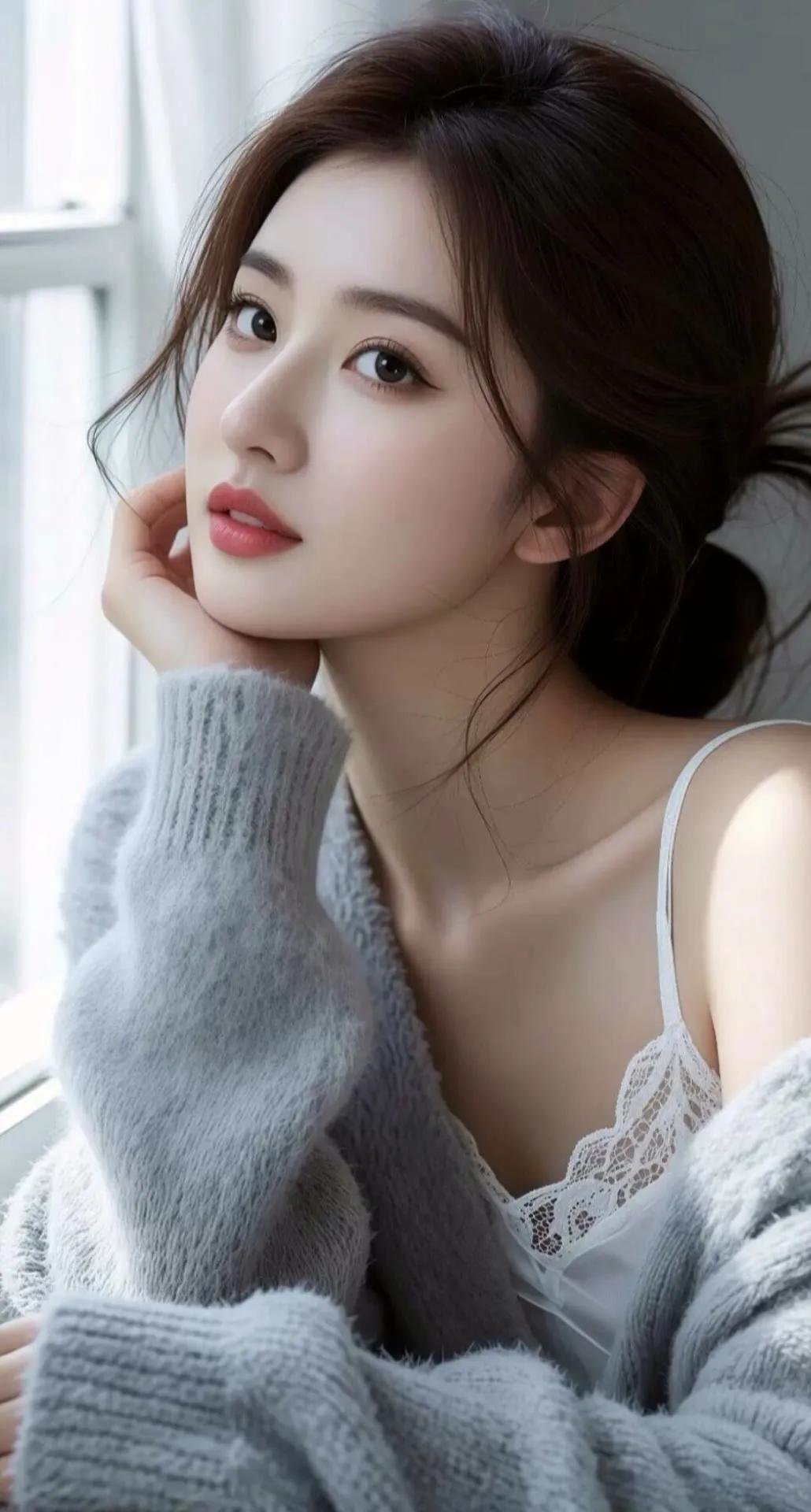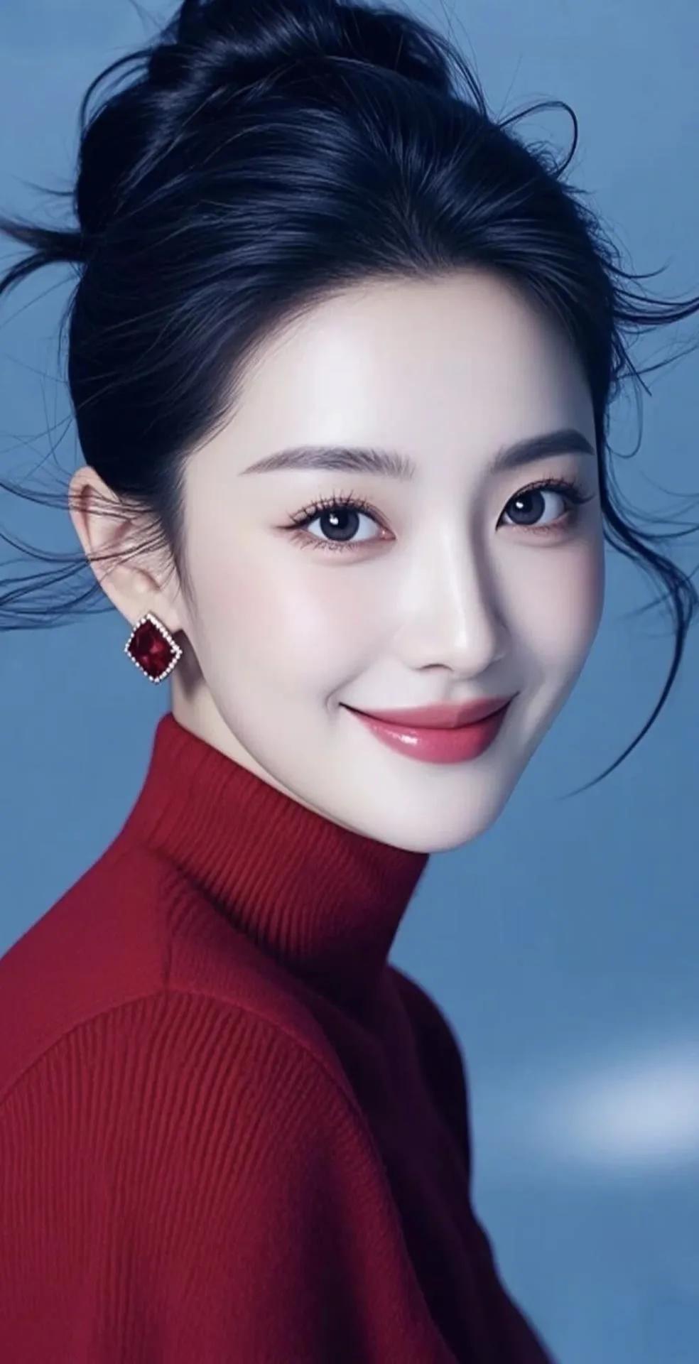 惊艳的古典美人,红唇白衣,宛如画中仙子。
