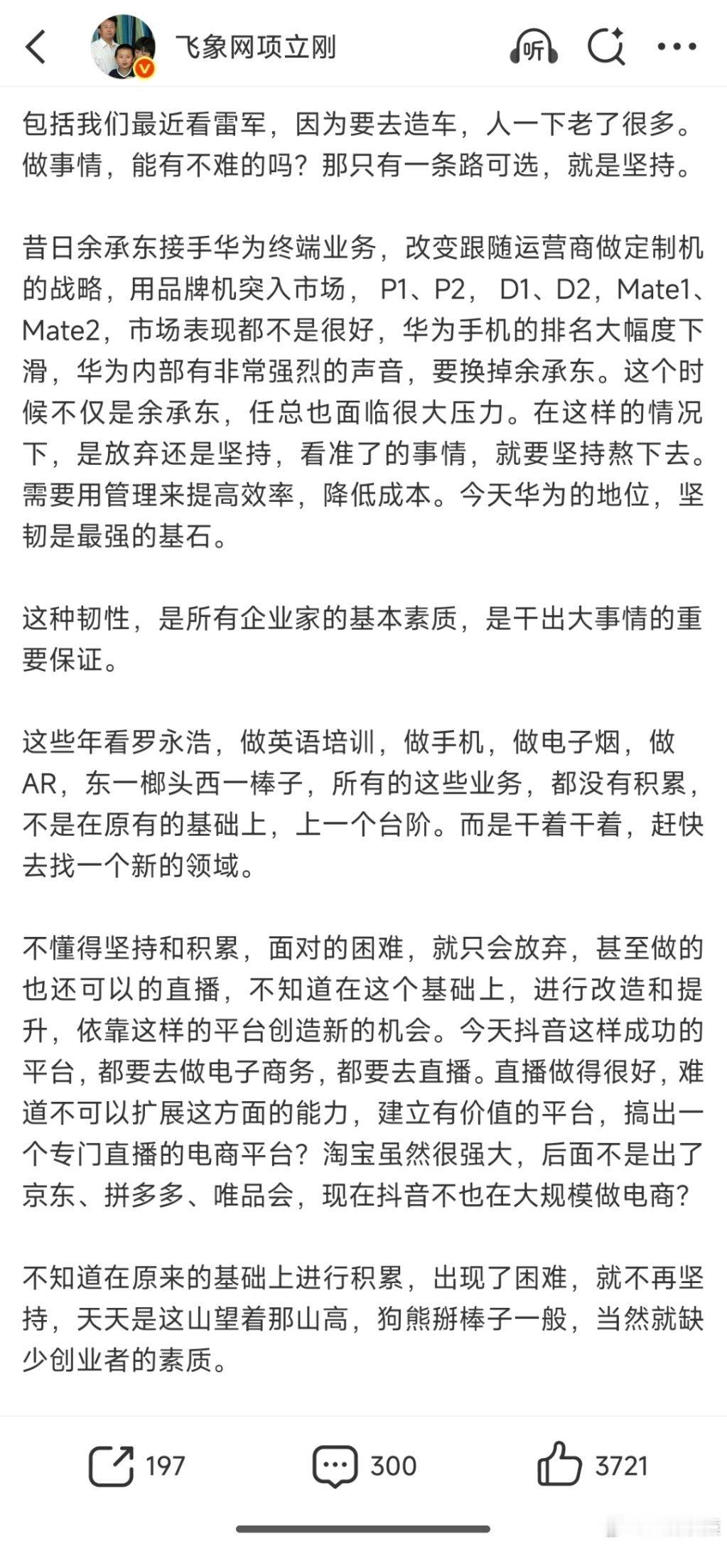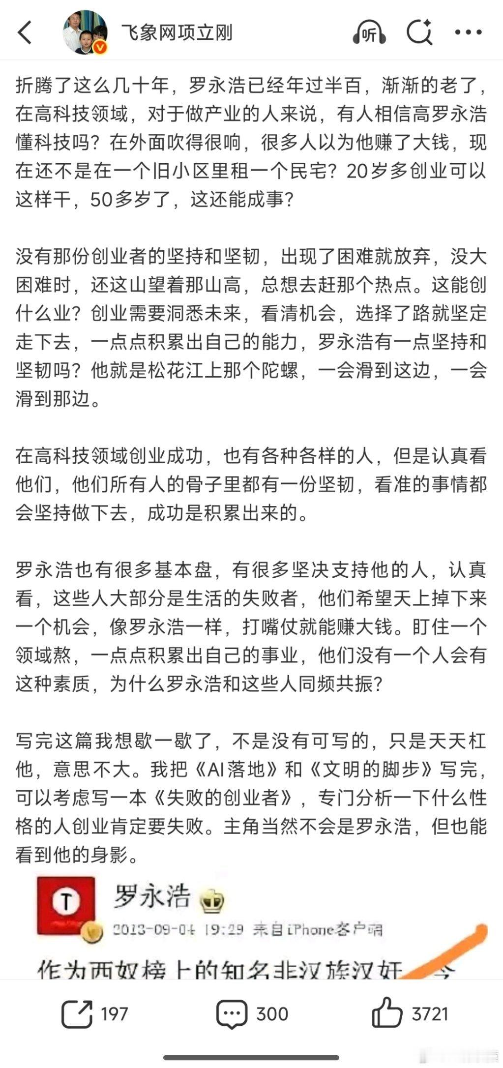 项立刚“檄文”罗永浩今天大结局了,觉得继续杠他意义不大。