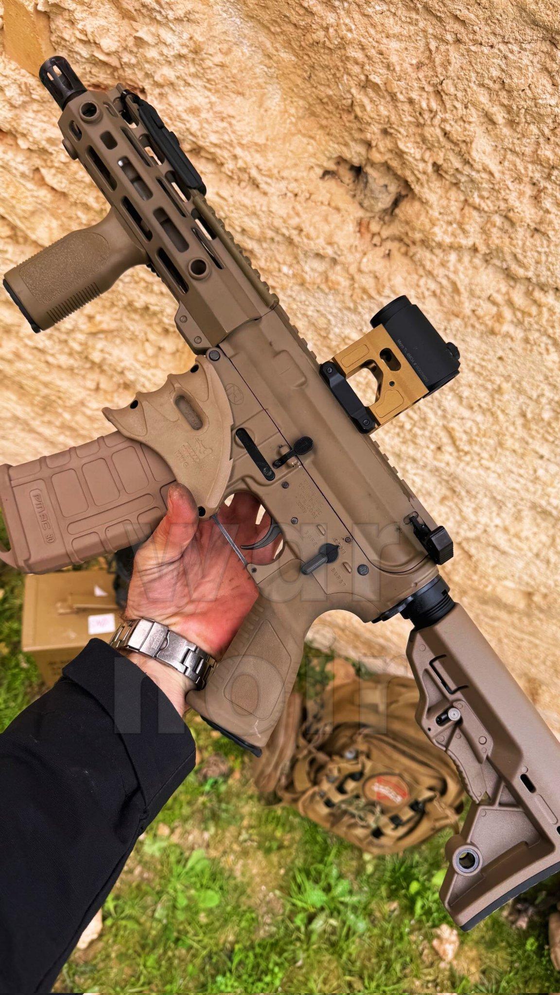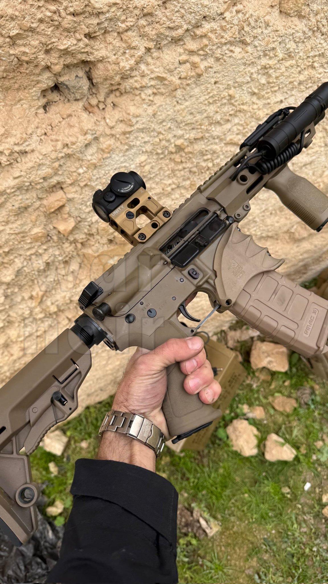 叙利亚:一名隶属于“高加索军团”( Ajnad al-Kavkaz ,与叙利亚军队有关联,前HTS成员)的 车臣成员正在展示他的AR-15卡宾枪。这款AR步枪是在经过大幅改装的FN M16A4突击步枪基础上改进而来——FN M16A4最初由 美国 提供给反叛武装。