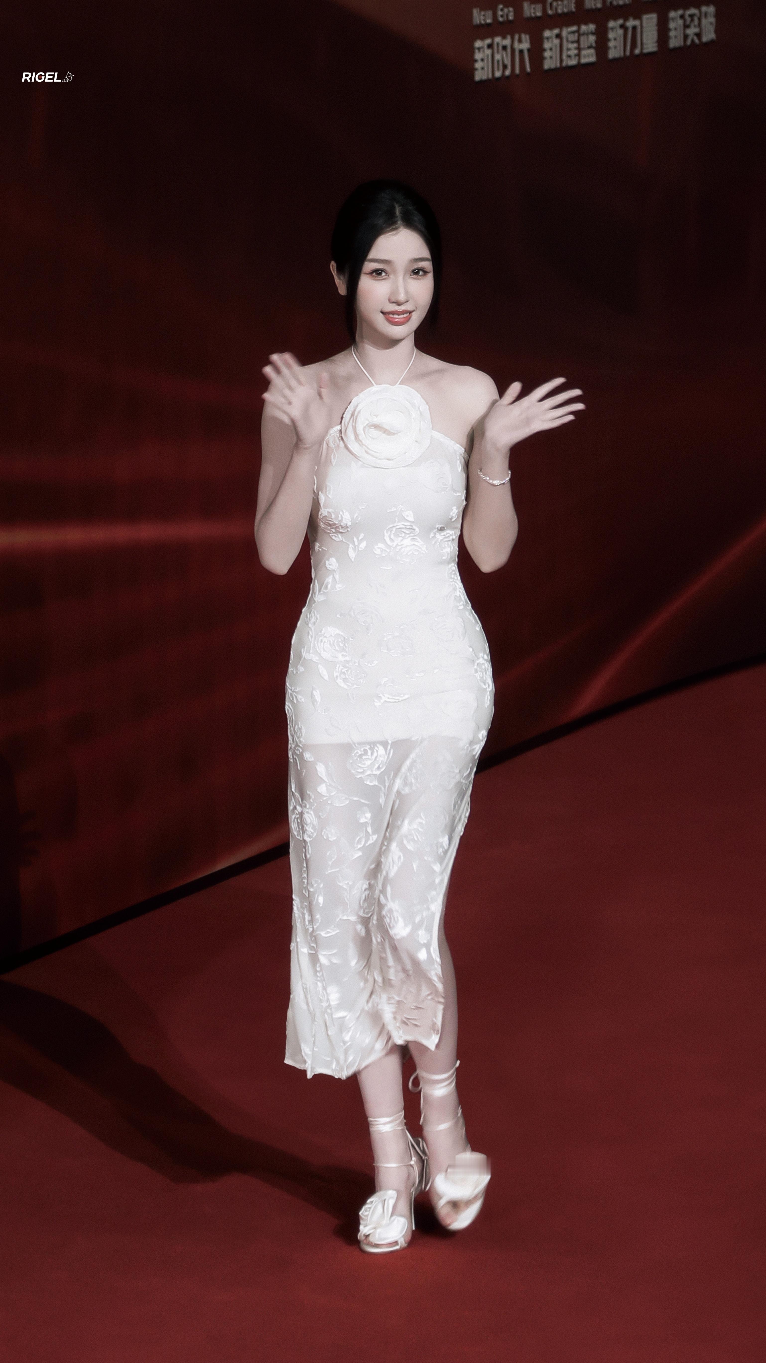 我老天,童瑶这裙子穿的简直了。整个上半身都露在外面,裙子穿的要垮要垮的,真替她捏