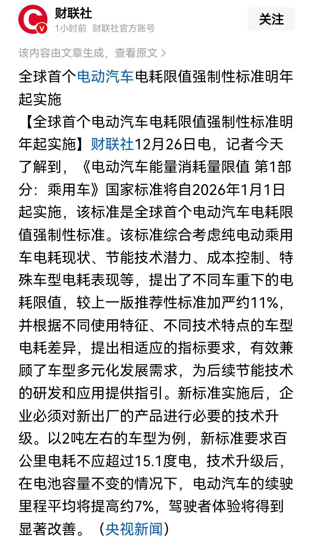 电动汽车新国标对电耗更严格了,2吨左右的车型为例,新标准要求百公里电耗不应超过15.1度电。电动纳智捷们瑟瑟发抖,以后那些为了卷续航直接堆电池,导致车又大又重的套路行不通了。如何在有限的车身重量内,去减少电耗、提升续航,这就很考验技术了。