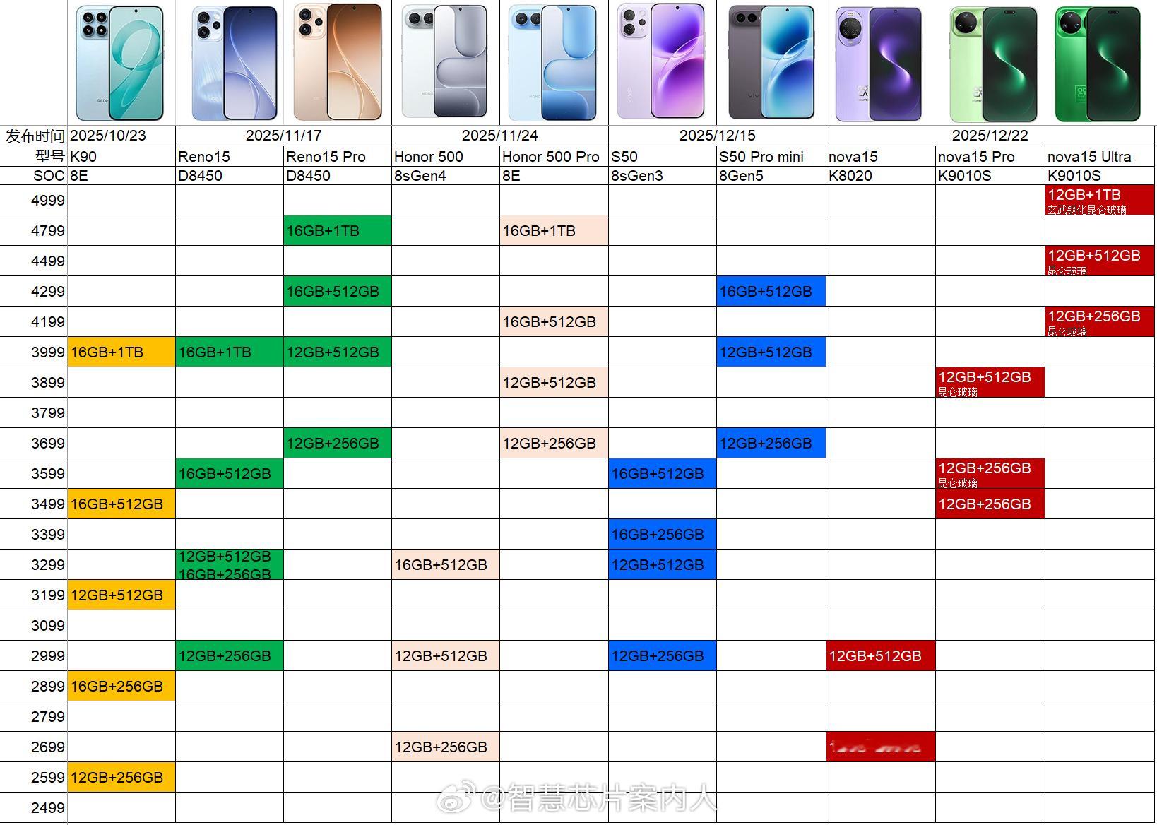 今年下半年发布的中档线下机价格分布,大家参考。只看Memory配置,配置不变的提升了价格,价格不变的降低了配置。看来只有二选一的策略。 手机市场数据分析
