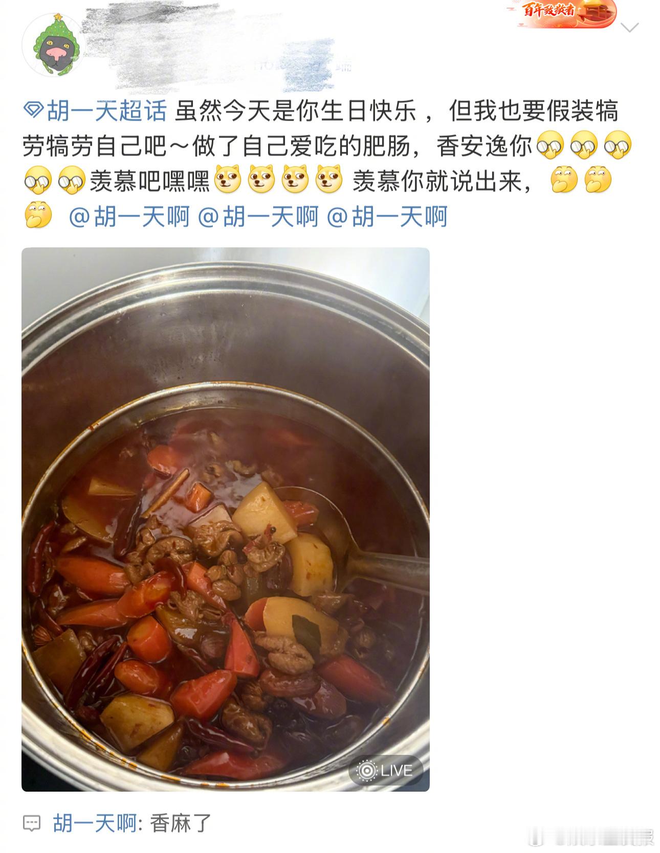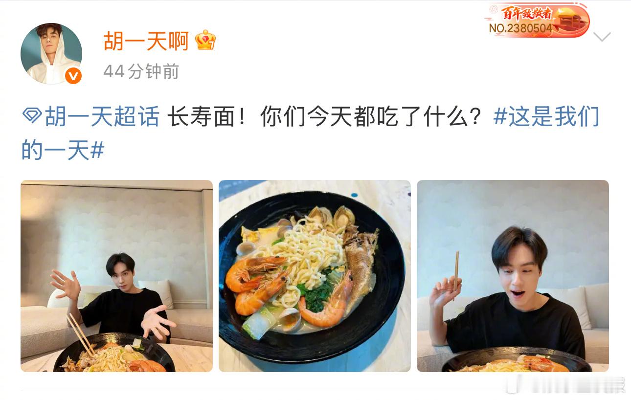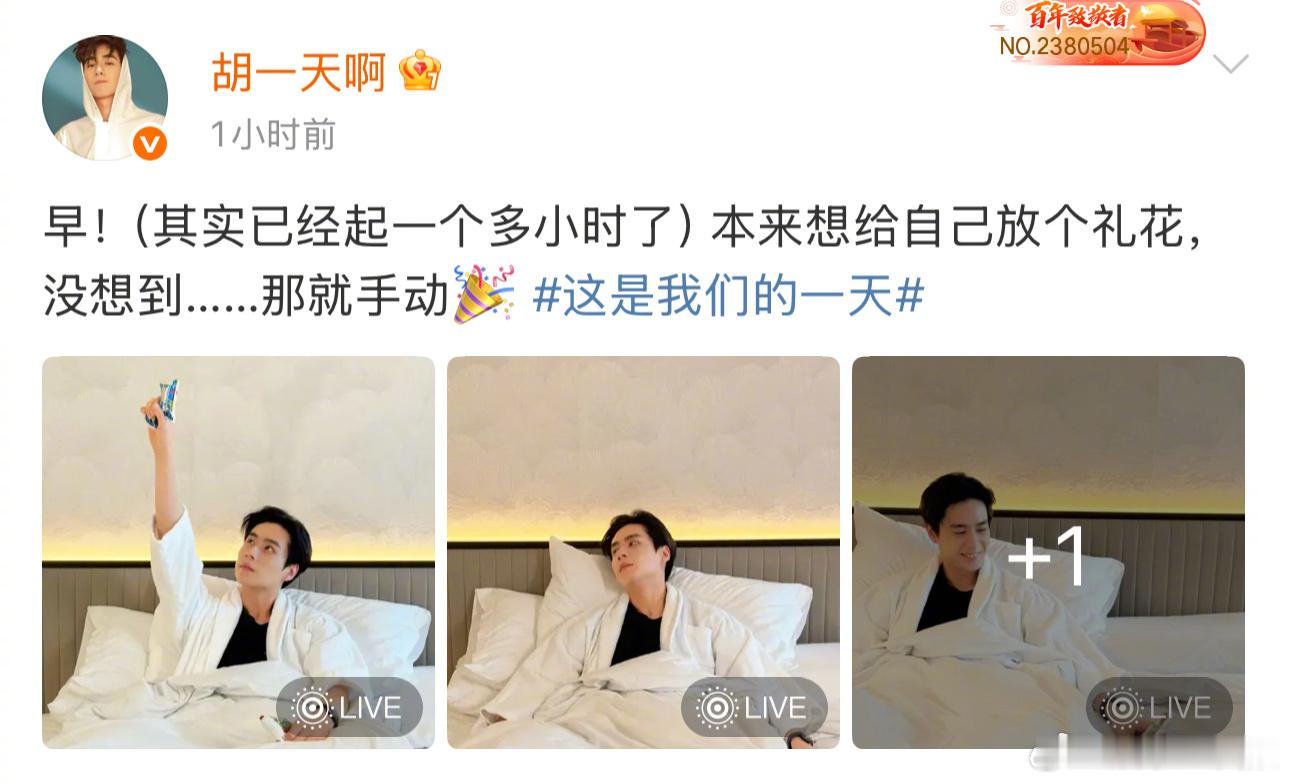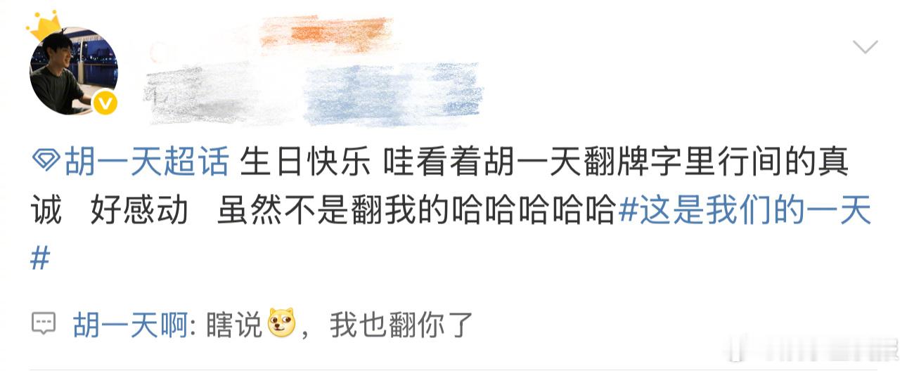 胡一天生日和粉丝分享一天胡一天 这是我们的一天生日空降超话跟粉丝报备自己的日常,连发多条动态+和大家翻牌互动,这一波双向奔赴,是谁羡慕了我不说!