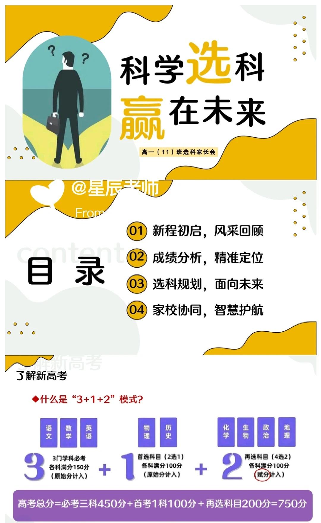 高一期末家长会👉选科一次讲透‼️ 高一已经快结束了,马上要选科分班了,昨天开完家长会,不少家长发来感谢的信息,即将分别还有点小伤感🥺 🌷希望孩子们都选到适合自己的组合,继续前行吧~❤️ 🌈🌈目录: 1⃣️新程初启,风采回顾 2⃣️成绩分析,精准定位 3⃣️选科规划,面向未来 4⃣️家校协同,智慧护航 新高考选科 高一选科家长会 高一选科分班 高一选科 高一家长会 高一选科建议 高一选科课件 高一期末家长会 高一期末家长会ppt