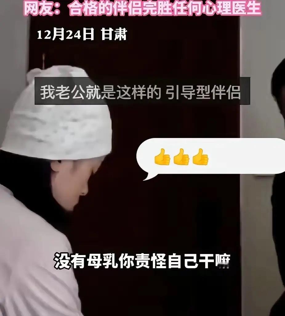 合格的伴侣胜过心理医生!12月24日,甘肃一女子产后因没有母乳而坐在床边抑郁,丈夫:“没有母乳是你的错吗?孩子不吃母乳就不行了吗?孩子吃奶粉照样能好好的。” 这位因母乳不足陷入情绪低落的女子名叫李娟,是甘肃兰州一家社区医院的护士,今年29岁,和丈夫张磊结婚三年才迎来第一个孩子。 李娟怀孕时就满心期待给孩子喂母乳,提前查了无数催奶偏方,还特意请了产假专心待产。可孩子出生后,她的奶量始终少得可怜,每次喂奶都要折腾一个多小时,孩子还是饿得直哭。看着同病房的妈妈们轻松哺乳,听着长辈们“没母乳的妈妈不是好妈妈”的念叨,她的心里像压了块石头。 出院回家的第一个晚上,孩子又因为没吃饱哭闹不止,李娟抱着孩子坐在床边,眼泪止不住地往下掉。她觉得自己特别没用,连给孩子提供最基本的口粮都做不到,越想越自责,情绪低落到了极点,甚至开始怀疑自己能不能当好妈妈。 张磊下班回家,推开门就看到妻子红着眼眶,孩子在怀里哭得小脸通红。他放下手里的菜,快步走过去接过孩子,轻轻拍着后背安抚。“是不是孩子又没吃饱?”他轻声问。李娟哽咽着点头:“都怪我,连母乳都没有,让孩子跟着遭罪。” 没想到张磊立刻打断她,语气坚定又温柔:“没有母乳是你的错吗?”他把孩子放在婴儿床上,转身握住妻子的手,“生孩子已经让你受了那么多罪,现在还要怪自己?孩子不吃母乳就不行了吗?我小时候就是吃奶粉长大的,不也健健康康的?” 他怕李娟还钻牛角尖,又补充道:“奶粉营养齐全,只要咱们好好照顾,孩子照样能长壮。你别给自己太大压力,你的身体和心情比什么都重要。”说着,他拿起手机点开购物软件,“我这就下单买最好的奶粉,再买个恒温壶,以后冲奶方便。” 那一夜,张磊几乎没合眼。孩子每隔两小时就醒一次,他主动承担起冲奶粉、换尿布的活儿,让李娟安心休息。凌晨三点,他看到李娟翻来覆去睡不着,又坐过去陪她聊天:“我知道你想给孩子最好的,但你已经做得很好了。从怀孕到生产,你受了那么多苦,我都看在眼里。咱们是夫妻,有问题一起扛,别一个人憋着。” 接下来的日子里,张磊把更多精力放在了照顾妻子和孩子上。每天早上,他提前一小时起床做早餐,给李娟炖鸡汤、煮小米粥补充营养;晚上下班,他第一时间冲进厨房做饭,饭后主动洗碗、打扫卫生,还会给李娟按摩腰和腿,缓解产后不适。 他还特意查了产后情绪调节的资料,知道李娟需要陪伴和肯定,只要有空就陪着她说话,哪怕是听她抱怨,也耐心回应。遇到长辈再念叨“没母乳不好”,他会立刻站出来维护妻子:“现在都什么年代了,奶粉喂养很常见,只要孩子健康、妈妈开心就行。” 在张磊的悉心照顾下,李娟的情绪慢慢好转,脸上也露出了久违的笑容。她开始主动参与照顾孩子,学着冲奶粉、换尿布,看着孩子一天天长大,心里的愧疚感渐渐消失。“如果不是他,我可能还陷在抑郁里走不出来。”李娟后来跟朋友说,“他不仅是孩子的爸爸,更是我的精神支柱。” 其实,产后情绪问题远比想象中普遍。国家卫健委数据显示,我国产后抑郁障碍发生率约为10%-15%,部分地区甚至高达20%,母乳不足、角色转变、身体不适等都是重要诱因。很多产妇像李娟一样,会因为母乳问题陷入自责,而家人的不理解往往会加重情绪负担。 兰州大学第二医院心理科医生表示,产后女性最需要的是情感支持和肯定,伴侣的态度直接影响产妇的心理状态。很多产后抑郁案例中,正是因为伴侣的忽视或指责,让产妇陷入孤立无援的境地;而像张磊这样的做法,看似简单的几句话,却能给妻子强大的心理支撑,帮助她顺利度过这个特殊时期。 婚姻的意义,从来不是单方面的付出,而是在对方需要的时候,能成为彼此的依靠。李娟的经历告诉我们,合格的伴侣,懂得体谅你的难处,理解你的脆弱,在你陷入低谷时,不会指责你、催促你,而是用温柔和坚定,带你走出阴霾。这样的陪伴,比任何心理疏导都更有力量。 好的婚姻能治愈人,坏的婚姻能消耗人。真正的伴侣,不是在你光鲜亮丽时追捧你,而是在你狼狈不堪时接纳你;不是在你完美无缺时爱你,而是在你有缺点、有难处时依然选择守护你。愿每个人都能遇到这样的伴侣,在漫长的岁月里,相互扶持,彼此温暖。 各位读者你们怎么看?欢迎在评论区讨论。
