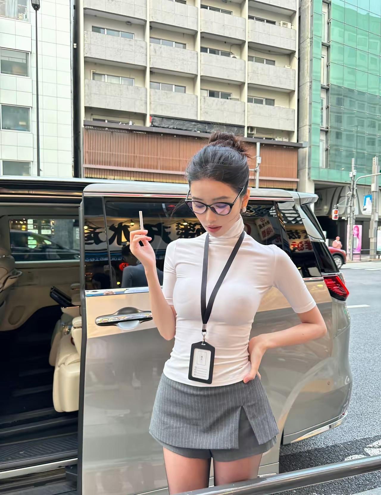 吴艳妮在成都穿着短裤大腿看起来很粗壮,表情自信又张扬