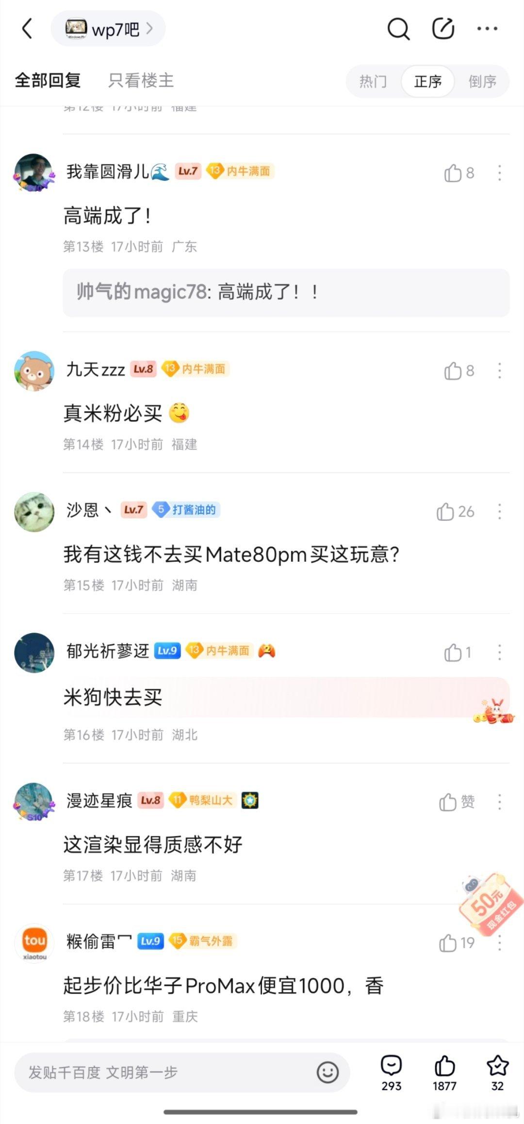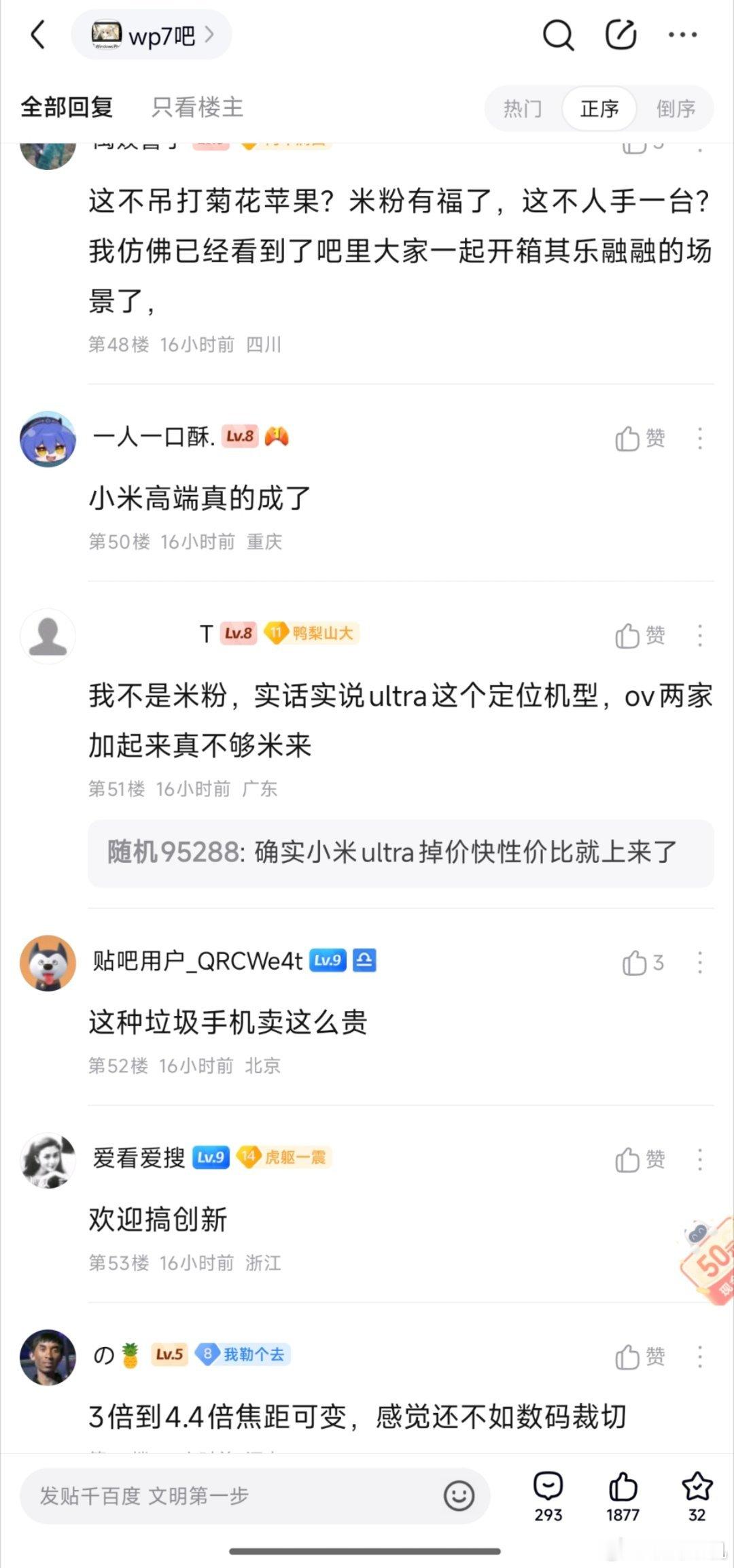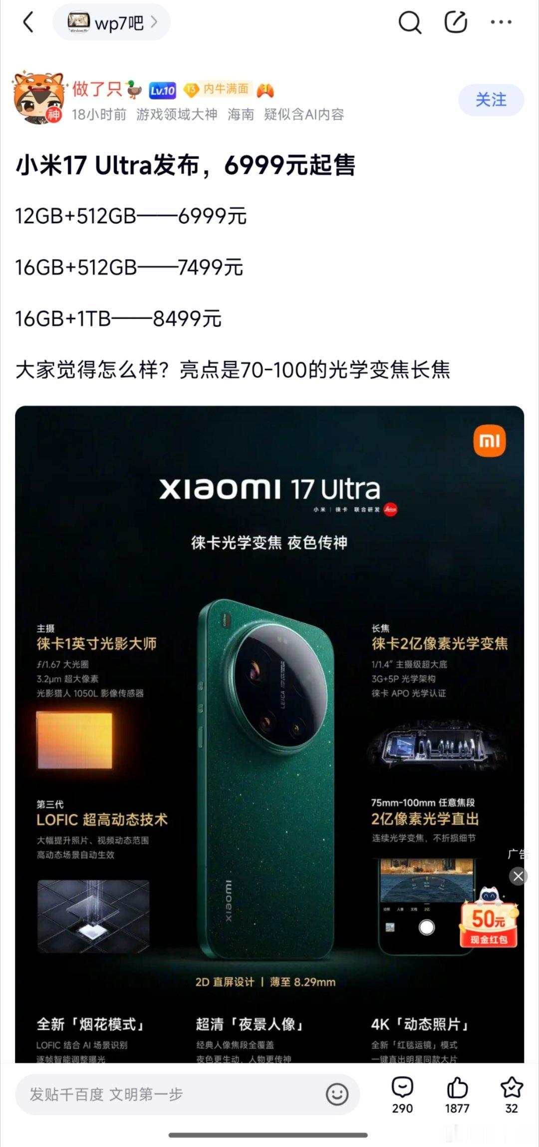 小米17ultra发布,花粉论坛讨论热烈,纷纷祝贺小米高端成了。