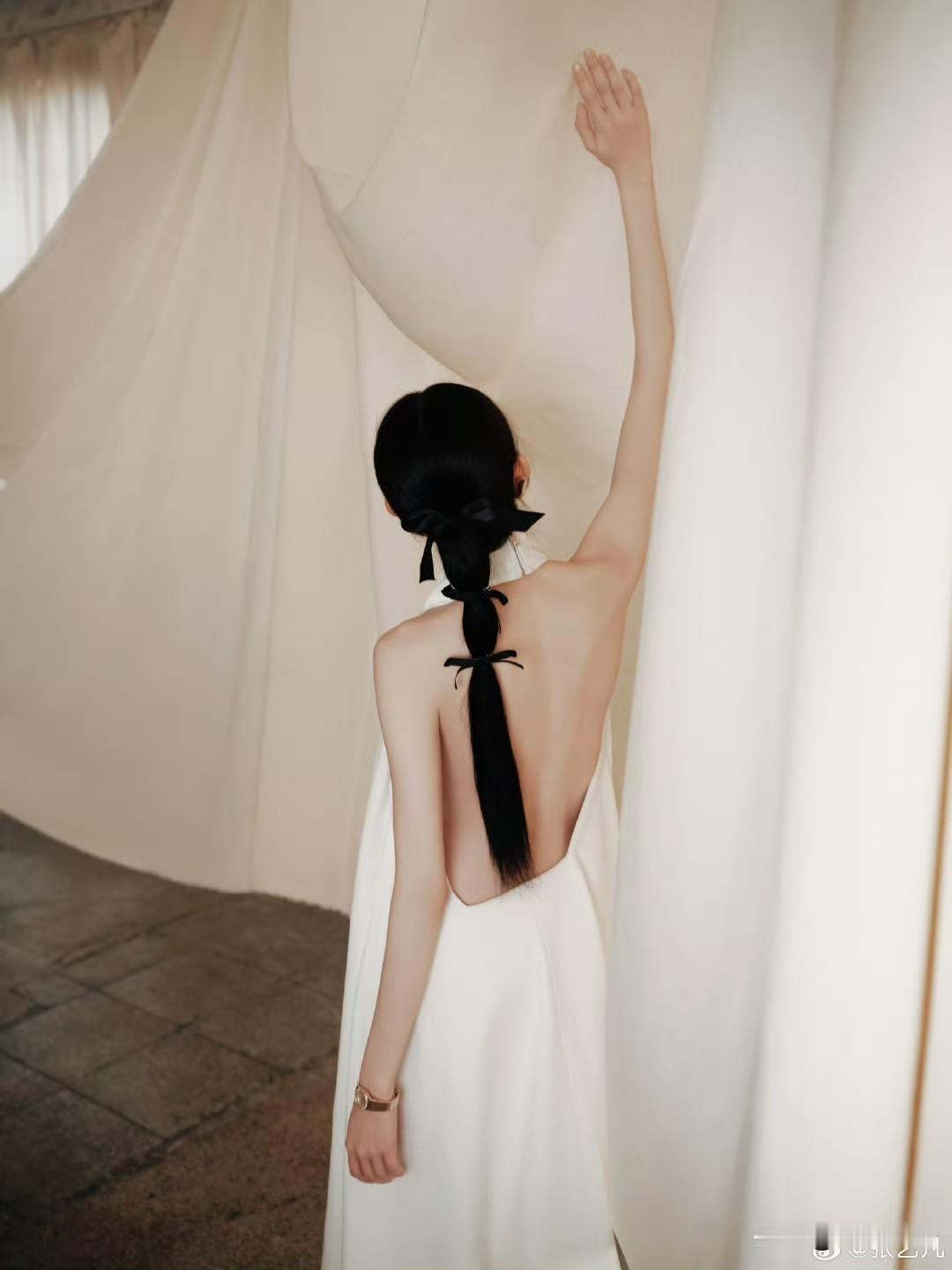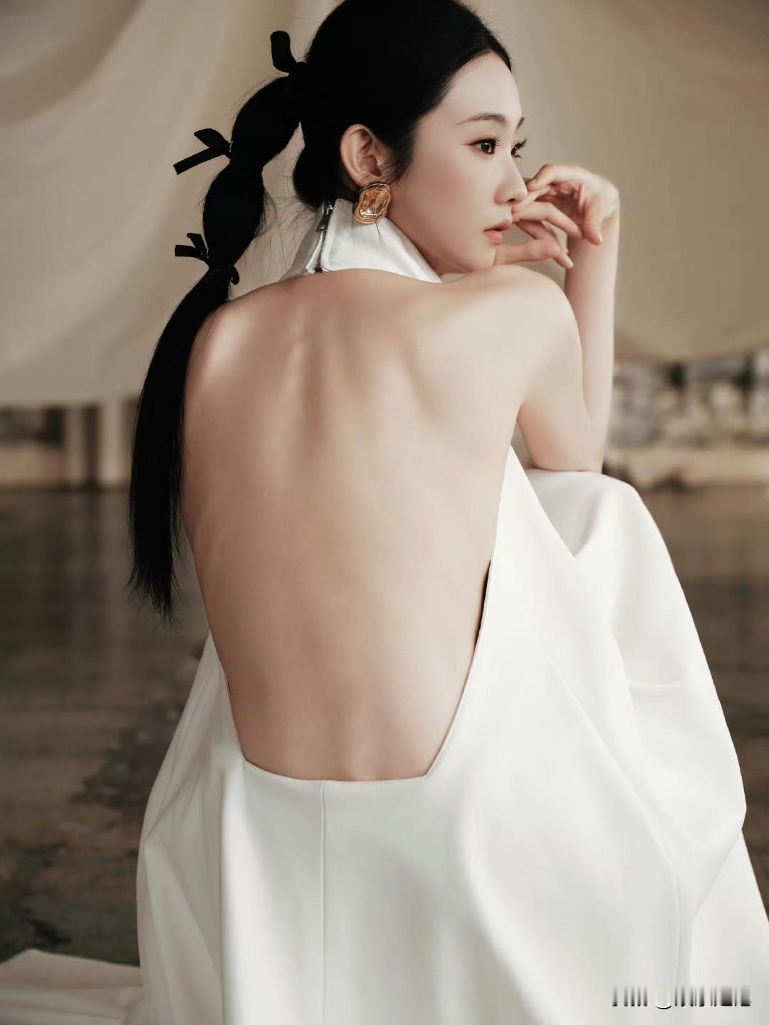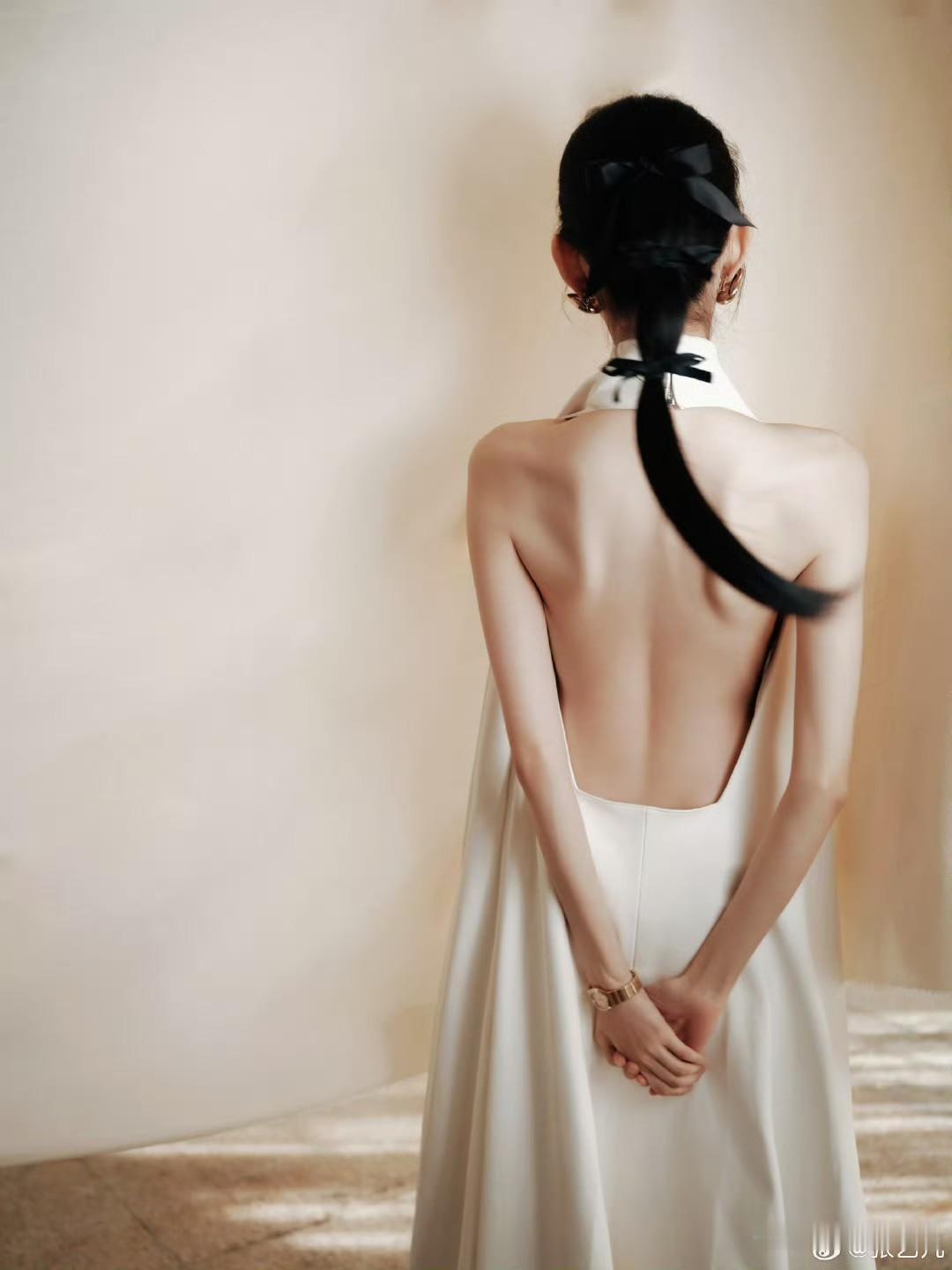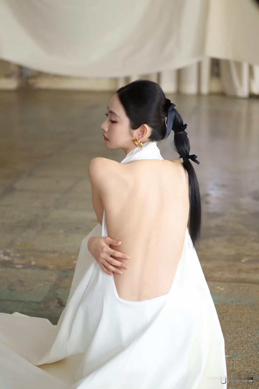 张艺凡 白裙滑落肩头,香肩半露,玉背如凝脂铺展,这肩背间的弧度,是揉碎了月光的勾人风情。
