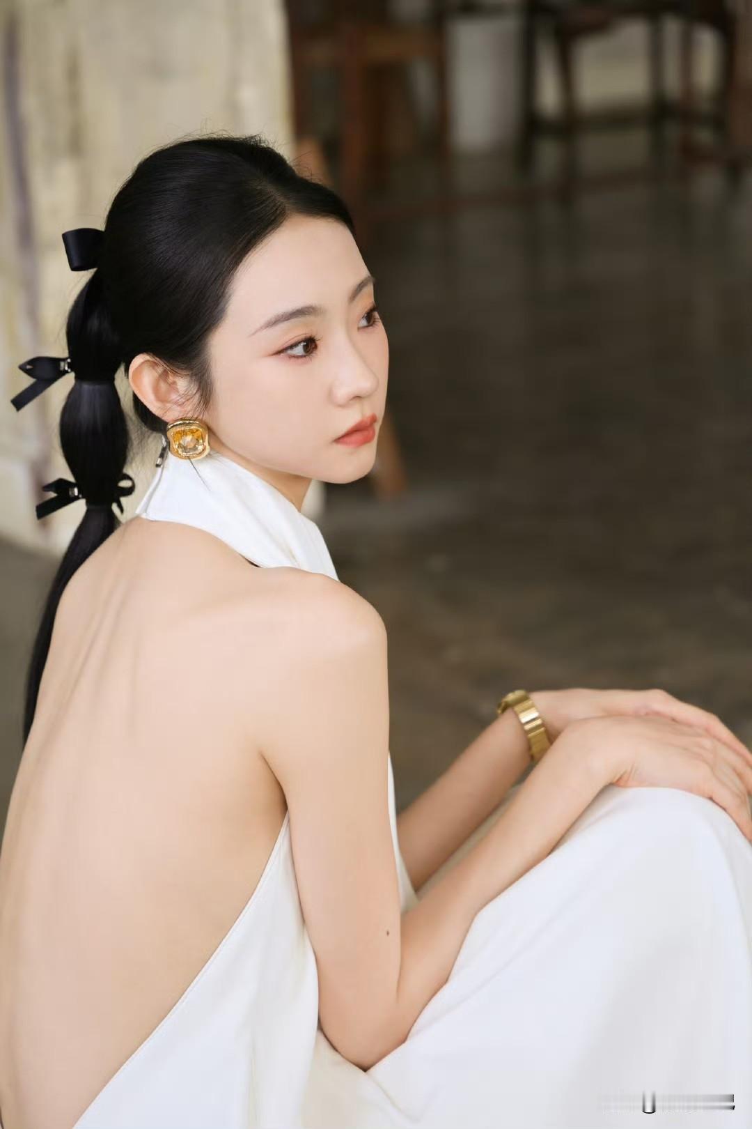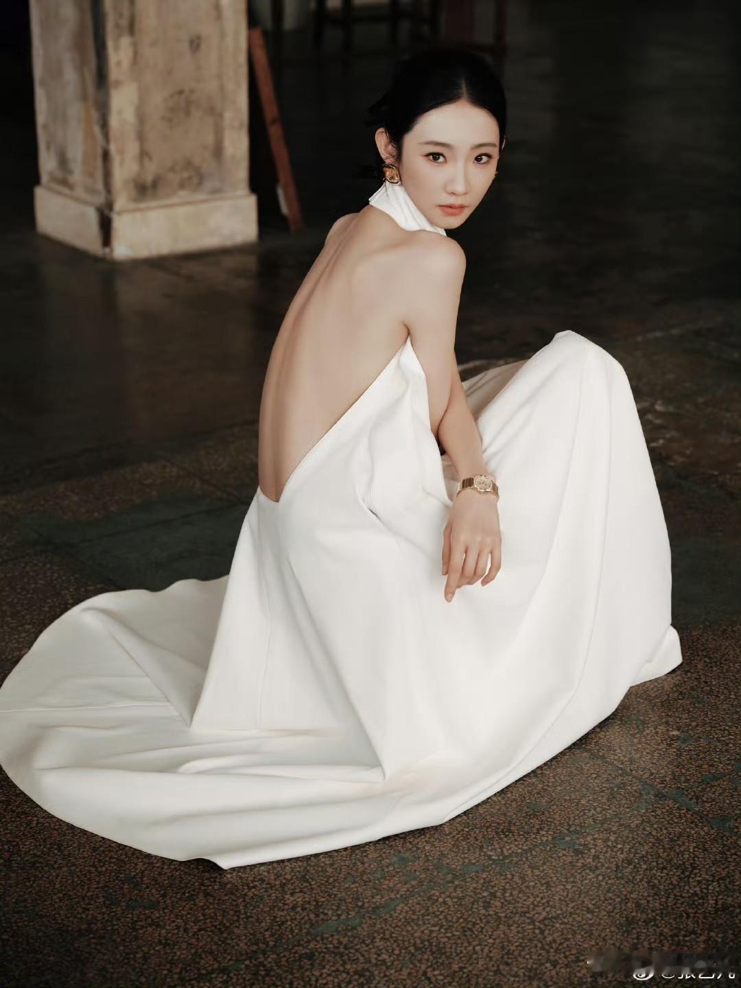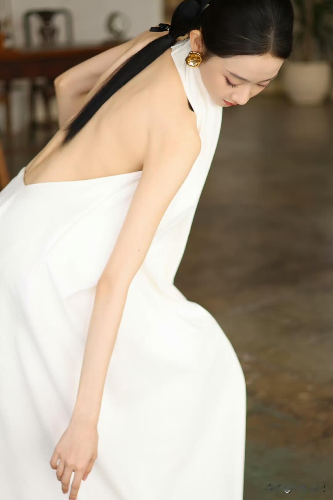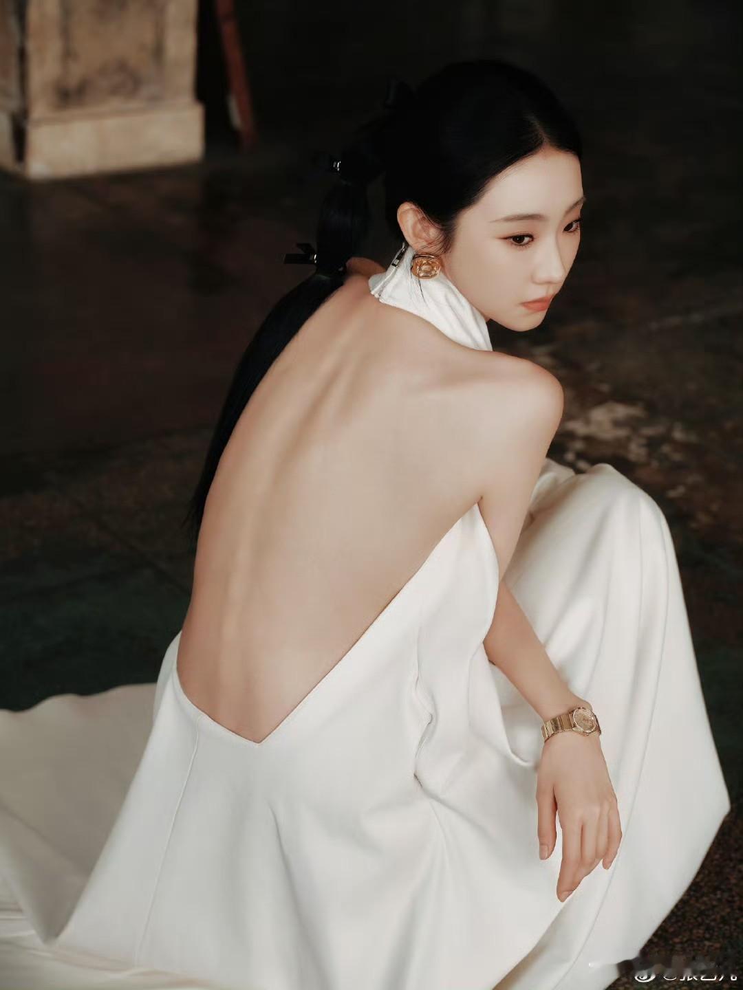 张艺凡 白裙滑落肩头,香肩半露,玉背如凝脂铺展,这肩背间的弧度,是揉碎了月光的勾人风情。