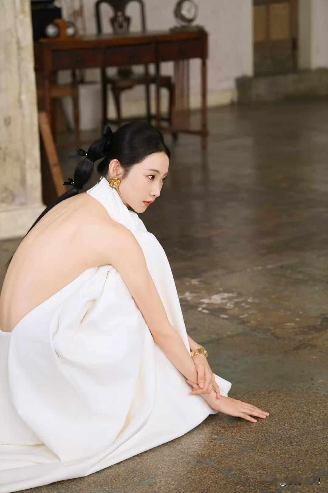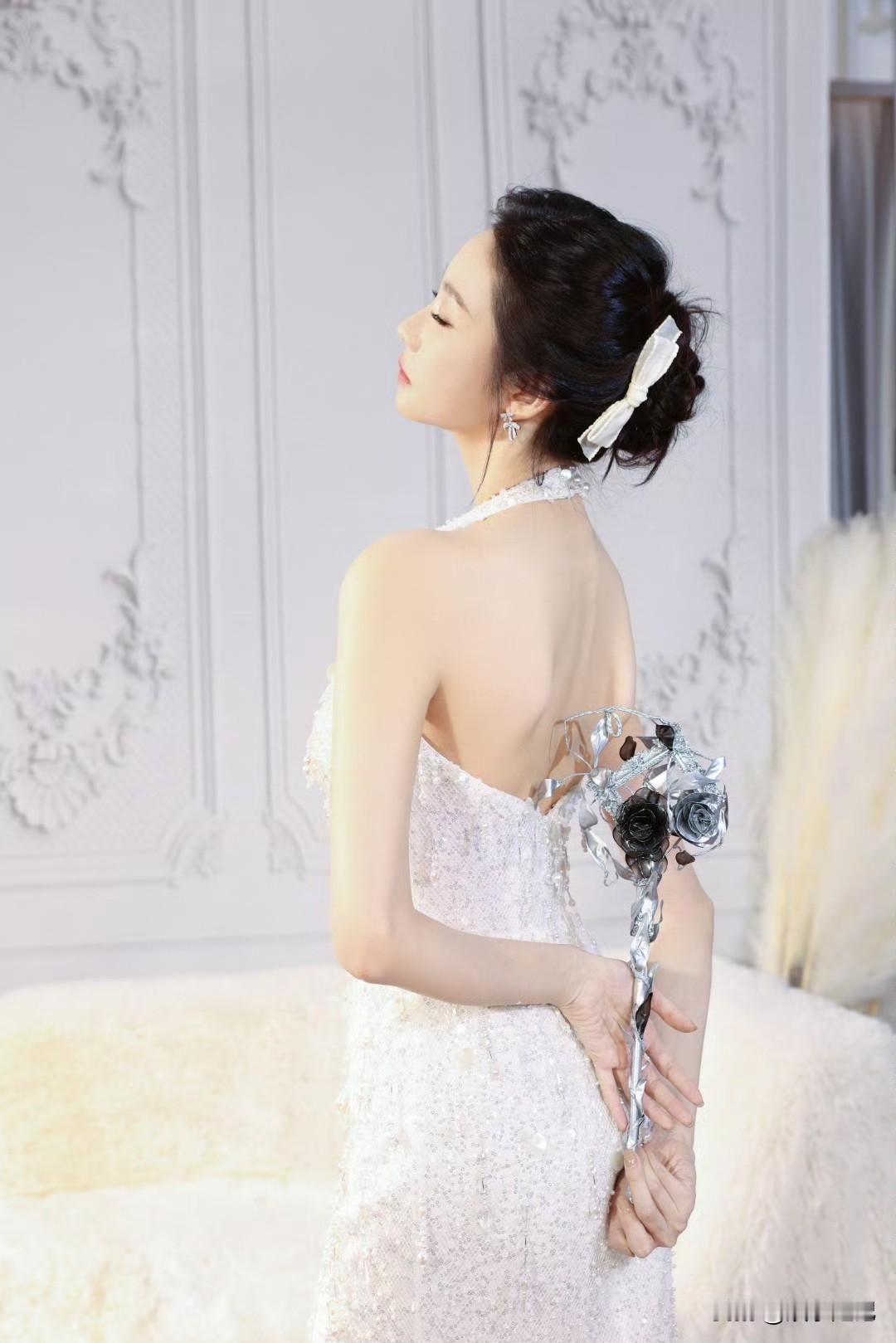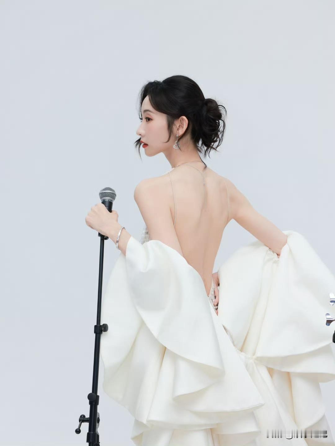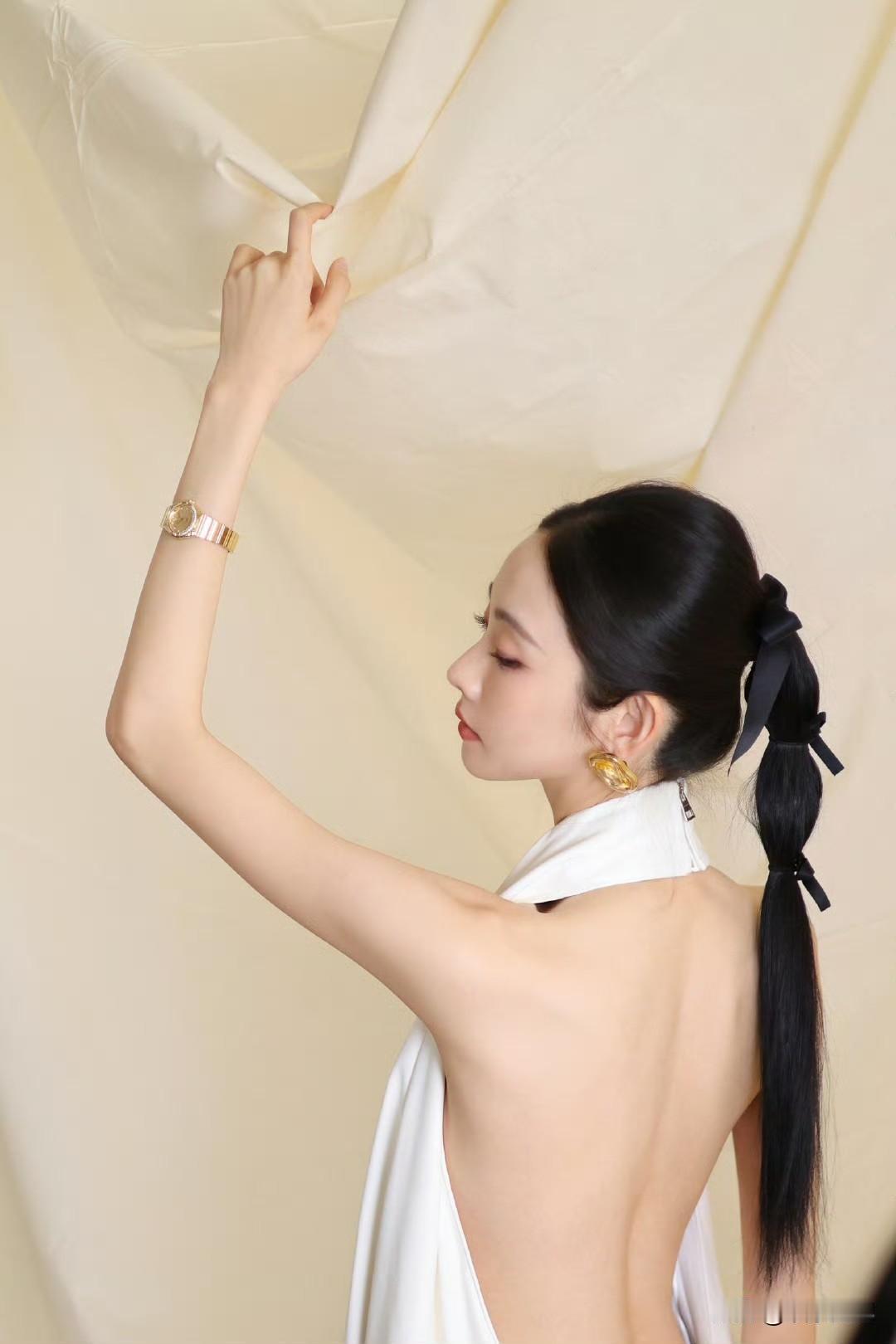 张艺凡 白裙滑落肩头,香肩半露,玉背如凝脂铺展,这肩背间的弧度,是揉碎了月光的勾人风情。