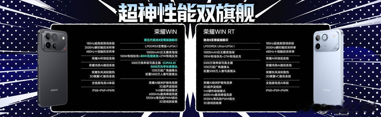 荣耀WIN系列一共有:快开黑、不怕蓝、指定赢3款配色,这名取得真不错哈哈,然后现在已经全面开售啦。荣耀WIN RT 12GB+256GB、16GB+256GB、12GB+512GB、16GB+512GB、16GB+1TB版本售价分别为2699元、2999元、3099元、3399元和3999元; 荣耀WIN 12GB+256GB、12GB+512GB和16GB+512GB、16GB+1TB版本售价分别为3999元、4499元、4799元和5299元。 有喜欢的冲冲冲~ 荣耀WIN 荣耀WIN价格