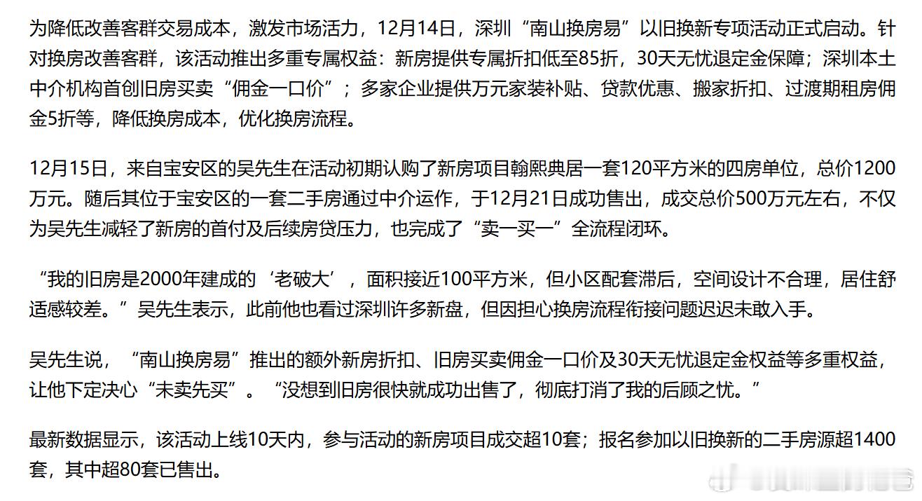 深圳住房以旧换新探索取得新突破!也不是啥坏事吧,如果房子没卖掉,买的新房可以随时取消。