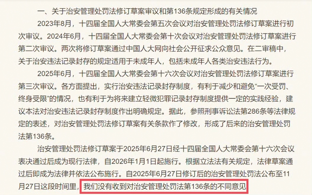 人家公开征求意见的时候没有一个人不同意,既然都同意了,现在不要恶意曲解“治安违法记录封存”法条了,反正马上就实施了。