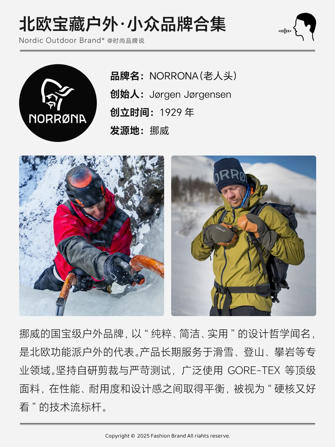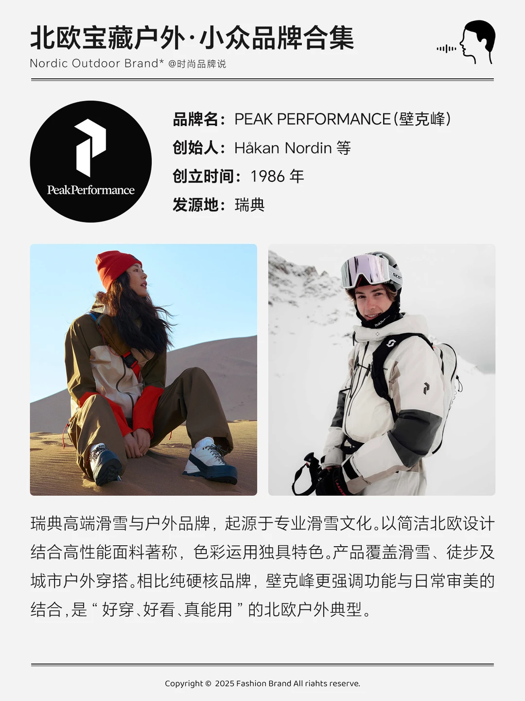 挪威国宝级户外品牌,以“纯粹、简洁、实用”的设计哲学闻名。产品长期服务于滑雪、登山、攀岩等专业领域,被视为硬核又好看的技术流标杆。