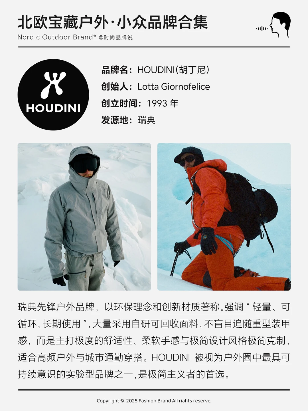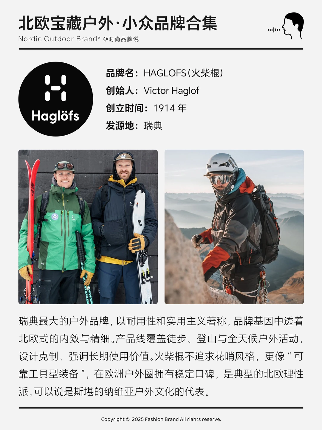 瑞典最大户外品牌,以耐用性和实用主义著称。设计克制、强调长期使用价值,是典型的北欧理性派。