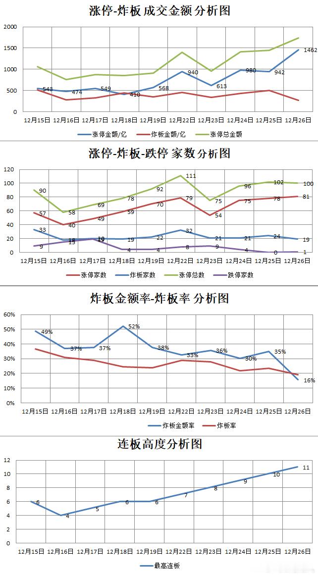 【12.26星期五】湖南人涨停复盘"涨停金额:1462亿炸板金额:2