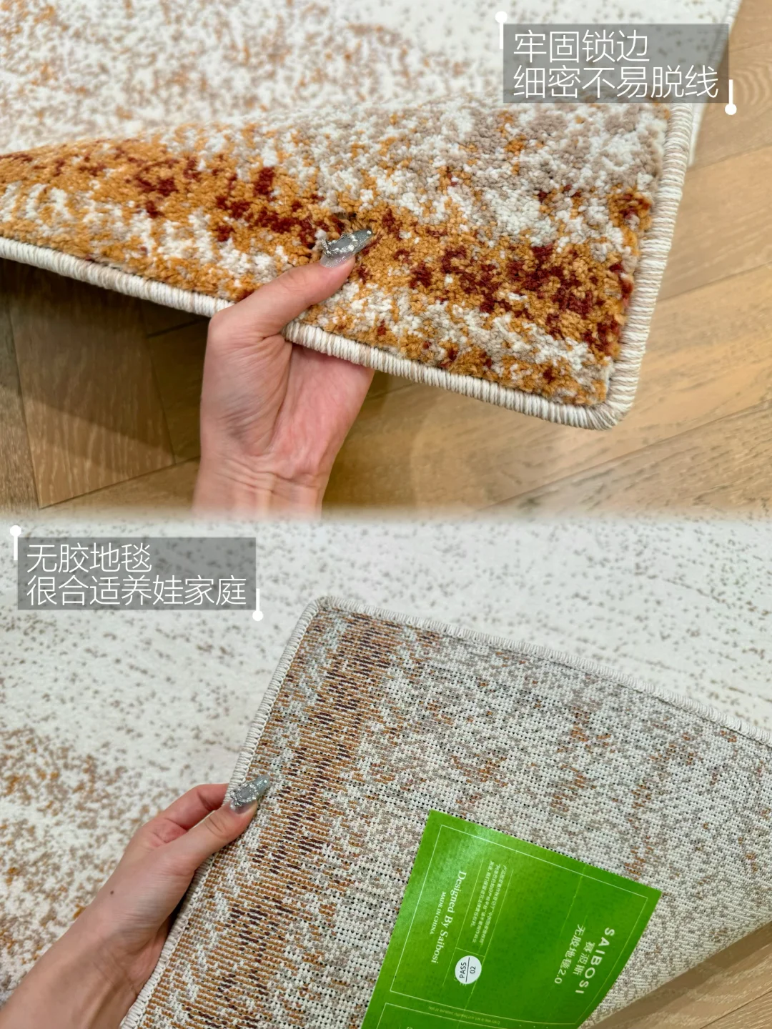 ▫️除了体感上舒适,更重要的原因它——无胶,赛波斯作为国内无胶地毯的开创者,整张地毯是没有一滴胶水的,无胶无甲醛,使用更放心!猫咪趴卧舔毛,我长时间坐在上面包装圣诞礼物,都不用担心健康隐患,真正做到了温暖又安心💕