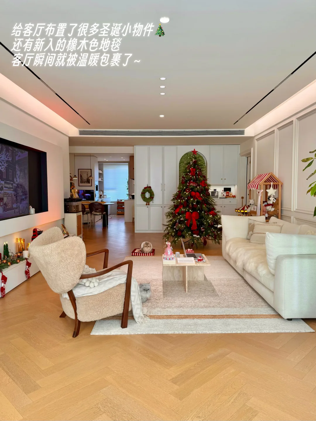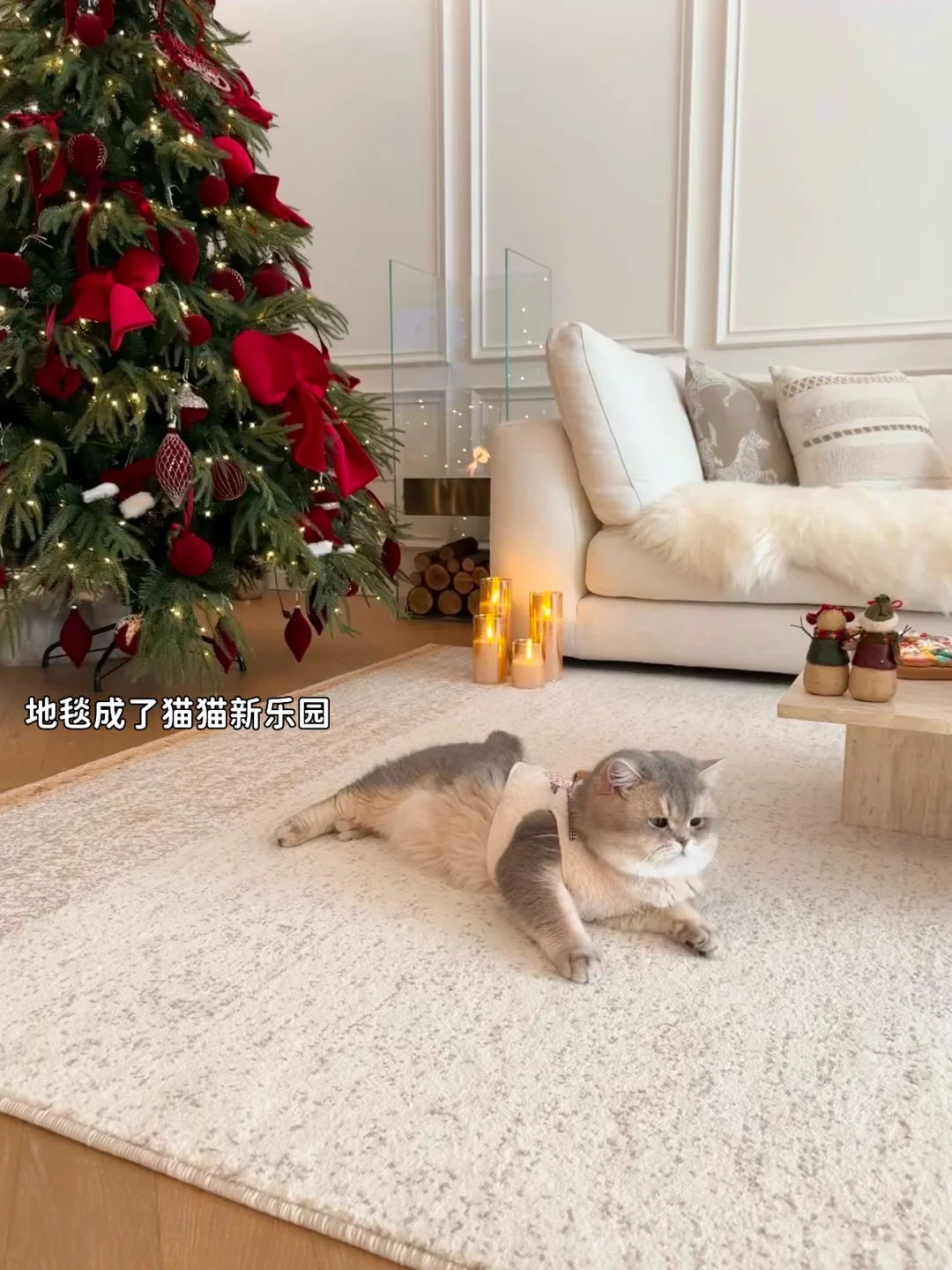 🔔圣诞客厅焕新,给客厅布置了很多圣诞小物件~当然少不了客厅的灵魂C位——地毯,铺上瞬间就被温暖包裹了~柔糯的触感让我和两只猫都陷在舒适里💤,我选的是赛波斯无胶地毯「橡木低语」