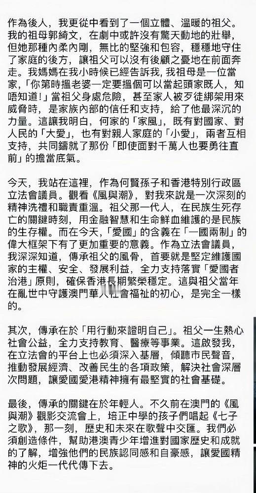何家人对任嘉伦在《风与潮》里的何贤给出高度评价,确实只有任嘉伦能演绎出何贤
