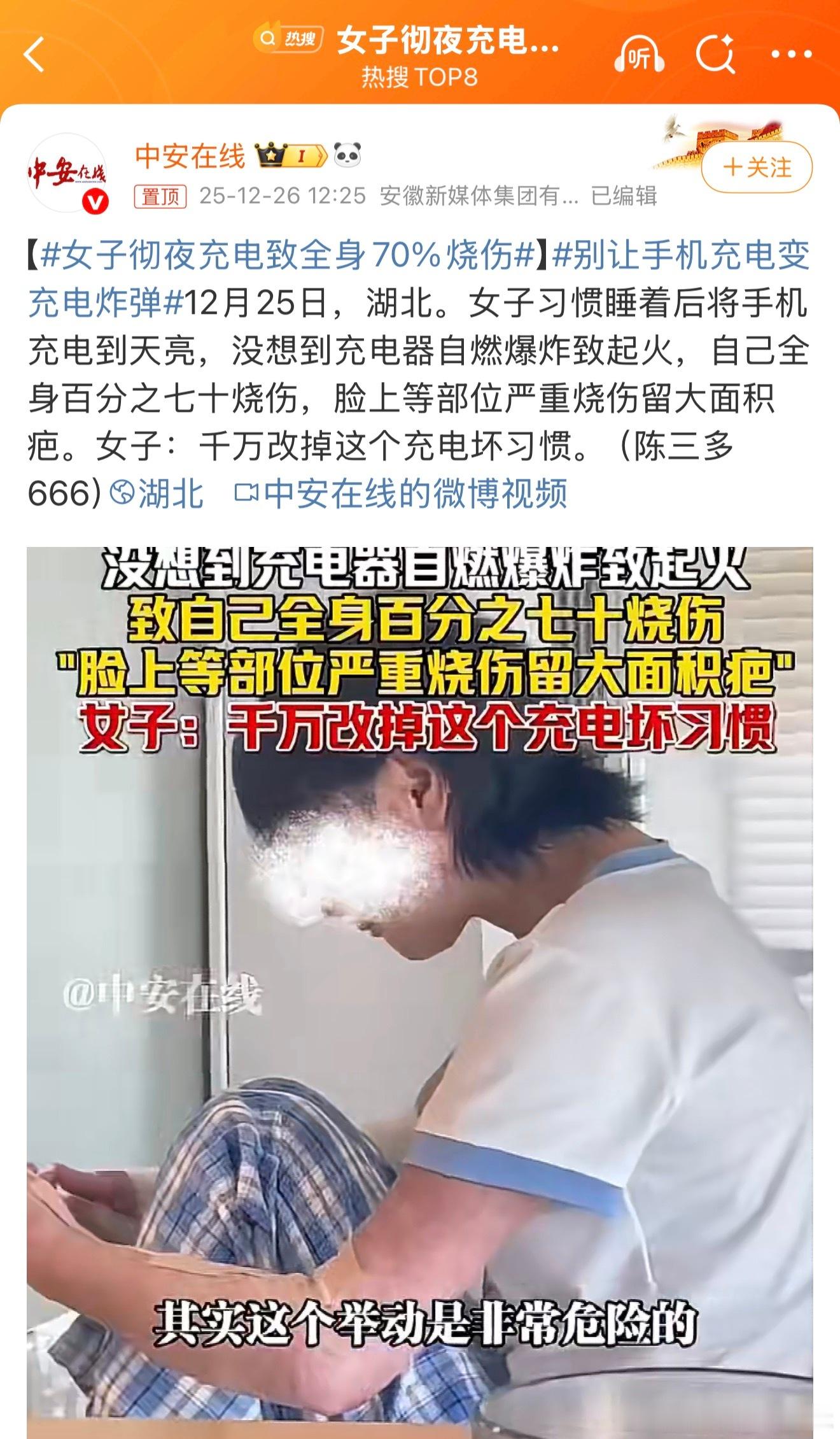 女子彻夜充电致全身70%烧伤什么手机品牌?有没有改装?充电器是不是正品正规的?排插有没有接触不良?