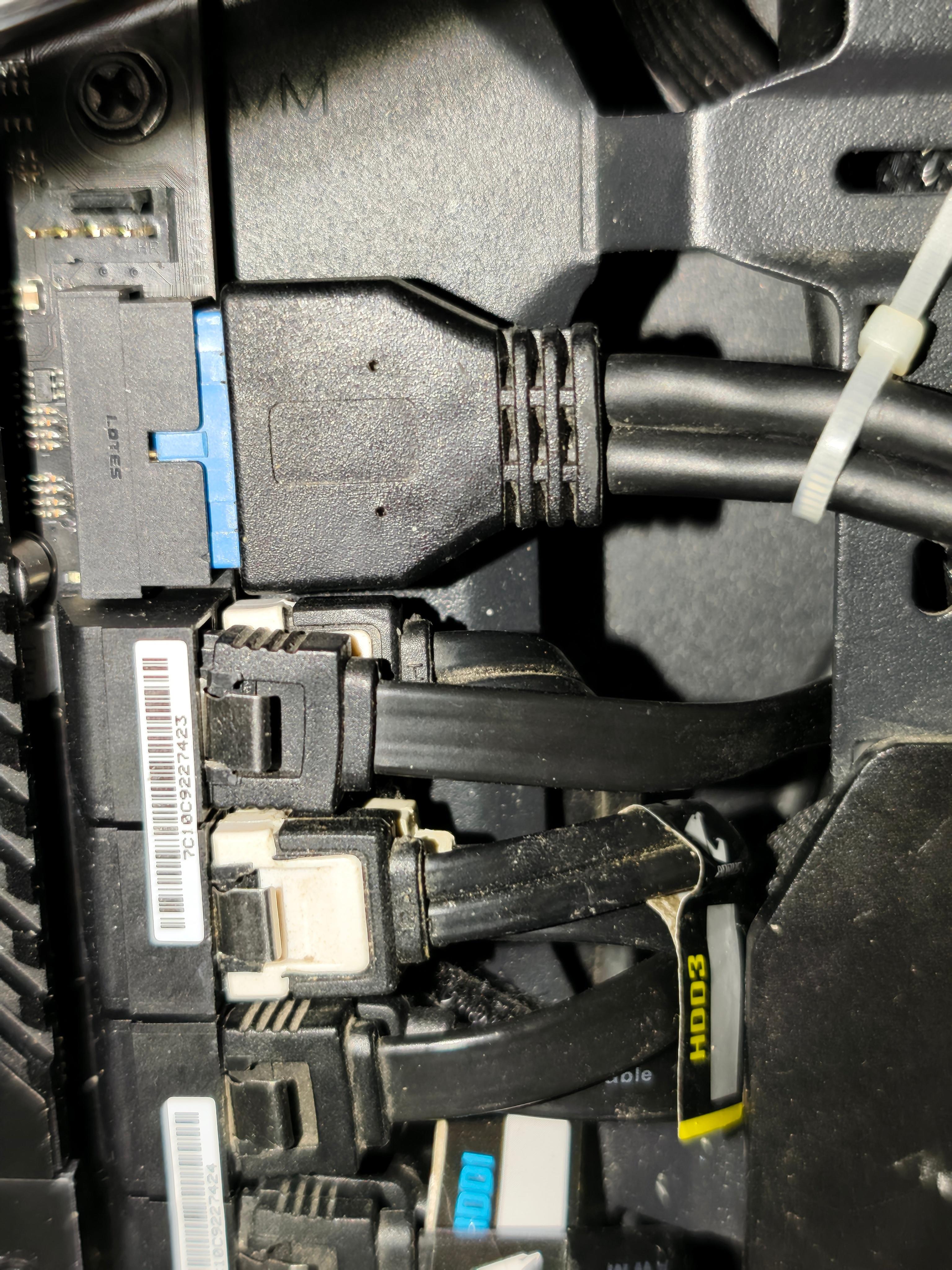 悲剧了机箱的前面板USB有一个没供电了。另外一个正常。感觉是接触不良或者哪里断了。最大可能就是主板插口断针。拆开检查果然,昨天让我爸帮忙安硬盘的时候,应该是按在这个接口上,把针脚按弯了,我之后装回去没注意,就这么按进去了。还好有点技术,一点点把针脚掰正。最后把线扎好。rog华硕这个设计不太合理。USB线这么粗,应该朝上设计,让线弯过来。机箱里面没那么大空间让这个线横着进来。
